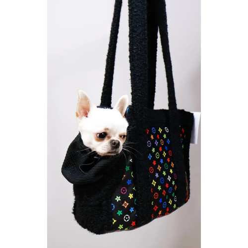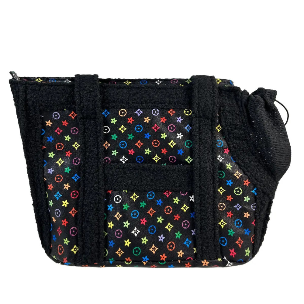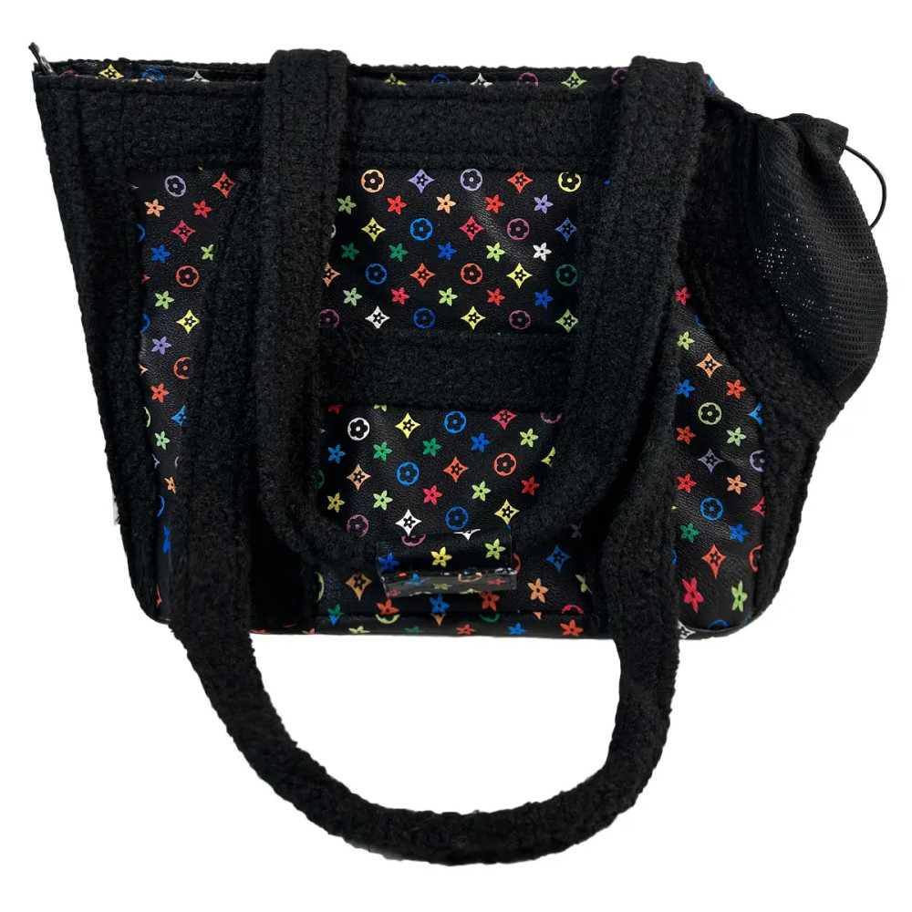 LV S-37 — стильна сумка-переноска для собак із поєднанням екошкіри та вставок із вовни-букле. Усередині — м’яка флісова підкладка і знімна подушка для додаткового затишку під час прогулянок і поїздок містом.