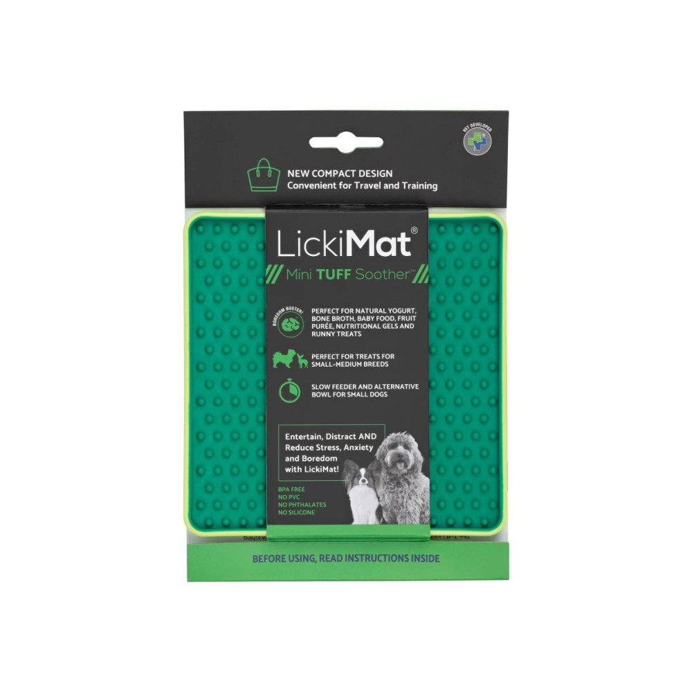 Ця модель LickiMat Mini Tuff Soother ідеально підходить для собак малих порід, цуценят, а також котів завдяки своєму компактному розміру 15х15 см.