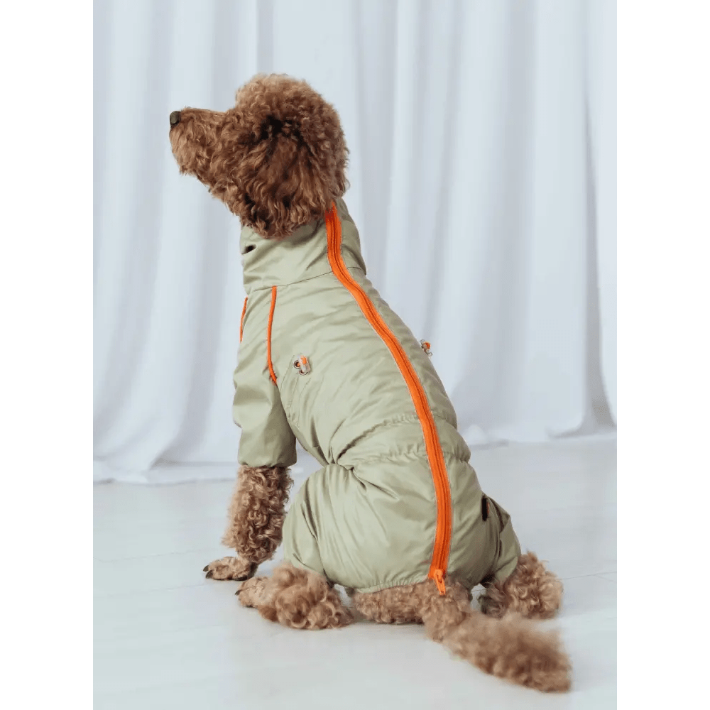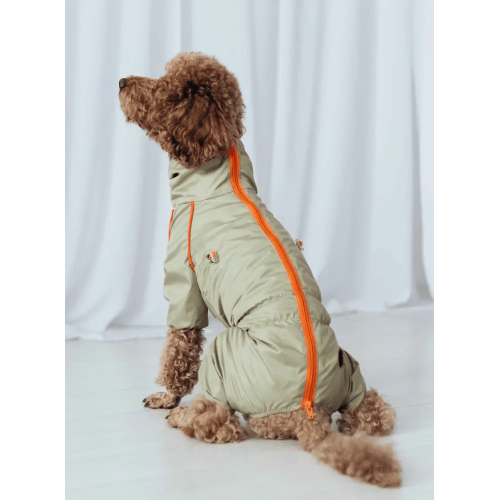 Завдяки змійці на спині процес вдягання та знімання дощовика стає простим і зручним, а регулятори обхвату на шиї й грудях дозволяють підлаштувати виріб під індивідуальні параметри вашого собаки. Стриманий оливковий колір робить модель універсальною та стильною, а також допомагає зберегти охайний вигляд навіть після активних прогулянок у негоду.