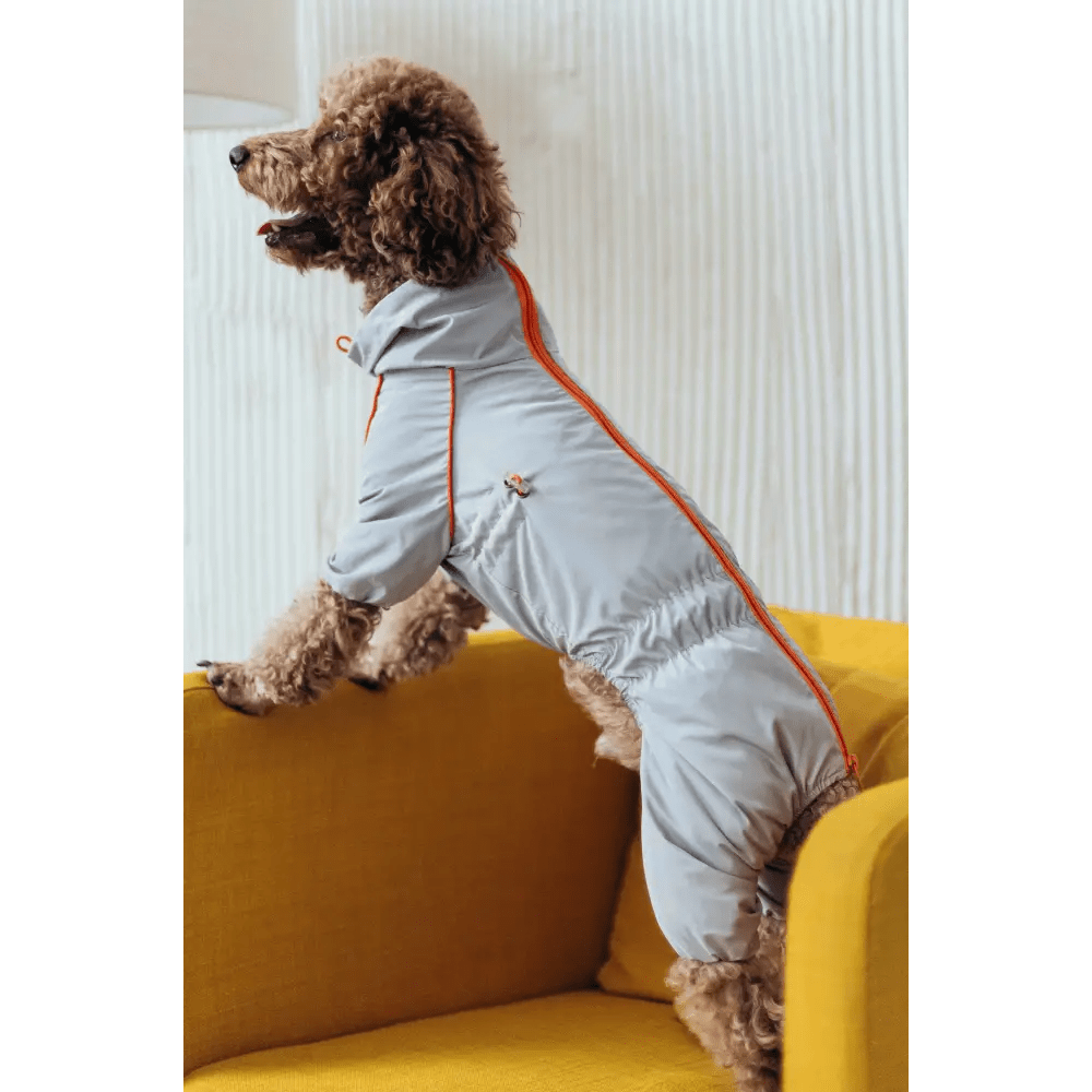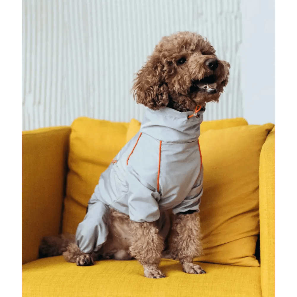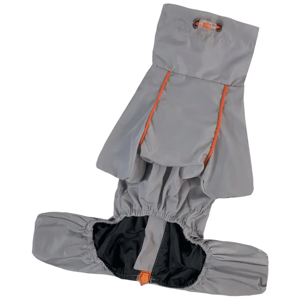 Головна застібка у вигляді змійки розташована на спині, полегшуючи процес одягання та зняття. Завдяки регуляторам обхвату на шиї та грудях ви зможете легко підлаштувати дощовик під індивідуальні параметри вашого собаки, забезпечуючи зручну посадку та свободу рухів. Стриманий сірий колір надає виробу універсального та стильного вигляду.