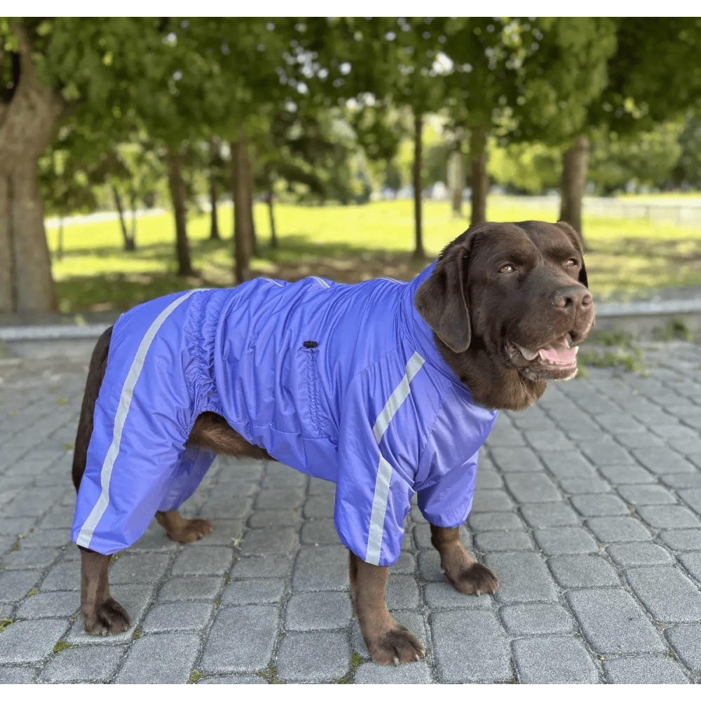 Поєднання щільної плащівки та флісу створює надійний бар'єр для холоду та води. Затяжка на шиї та еластичні резинки на штанцях гарантують щільне прилягання, запобігаючи потраплянню вологи та холодного повітря всередину дощовика для собак.