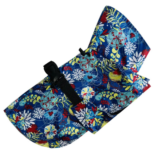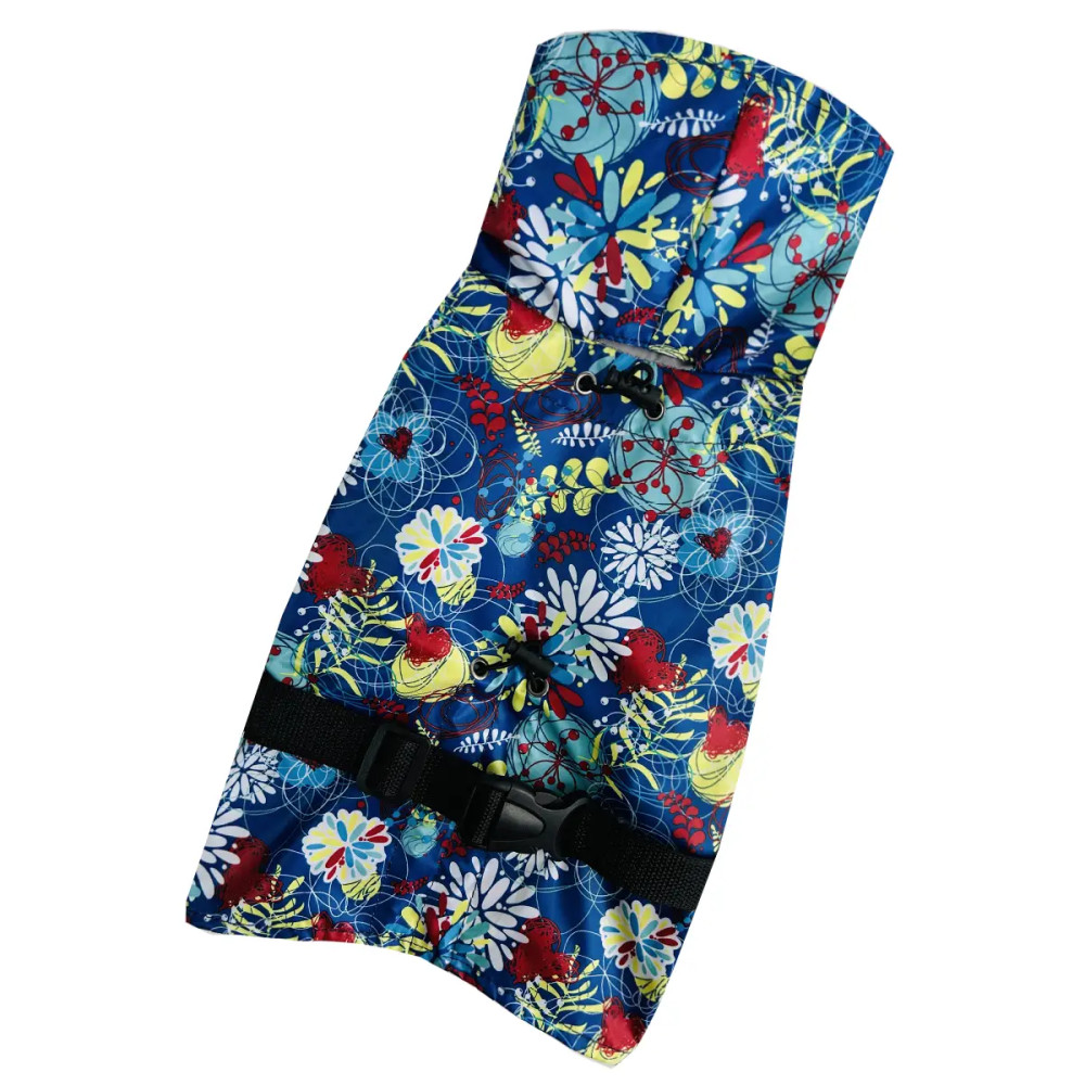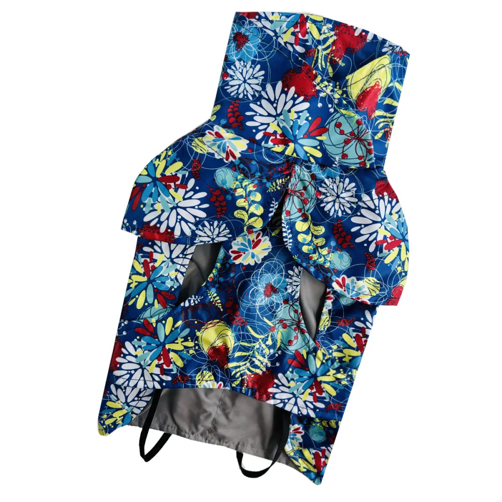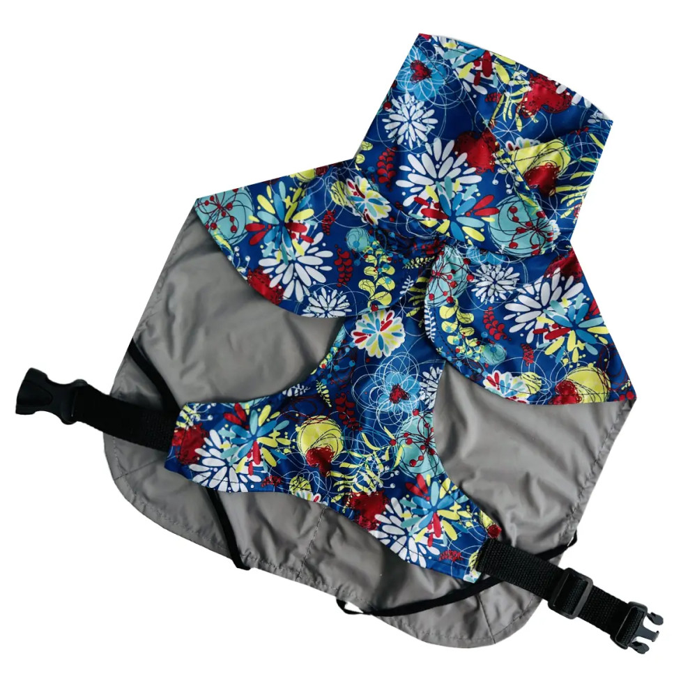 - Дизайн: абстрактний візерунок на синьому тлі покращує помітність собаки.
