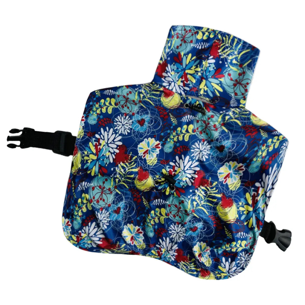 Конструкція виробу передбачає спеціальний ремінець на спині, який дозволяє швидко зафіксувати плащ, а також регулятори обхвату шиї, грудей та довжини спинки. Це дає можливість ідеально підігнати одяг під параметри конкретного собаки, а високий капюшон-комірець додатково захищає вуха від вітру та вологи.