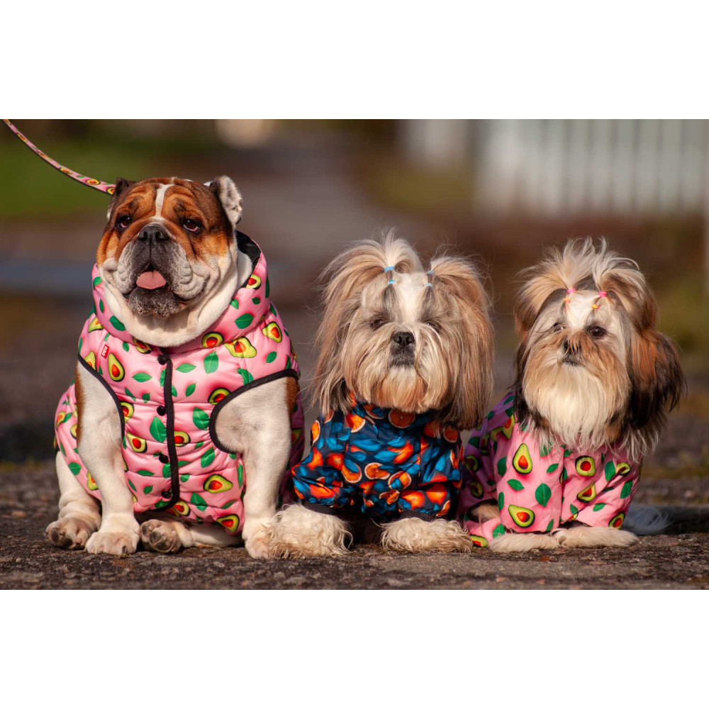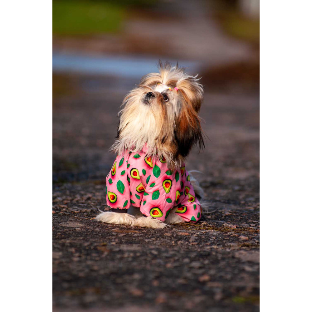 Цей легкий і міцний одяг створений для максимального комфорту. Завдяки блискавці на спині, яка застібається зверху донизу, вітровку легко надягати та знімати. Оригінальний малюнок "Авокадо на рожевому" додає виробу яскравості та робить вашого собаку модником на будь-якій прогулянці.