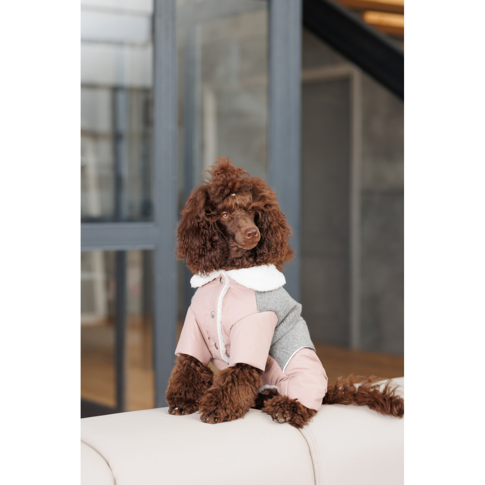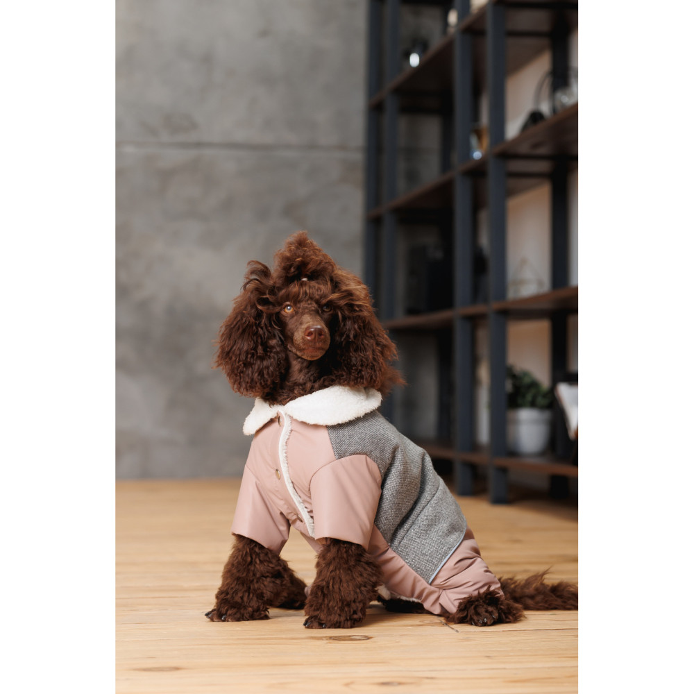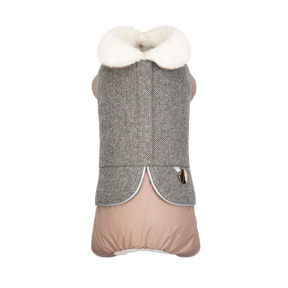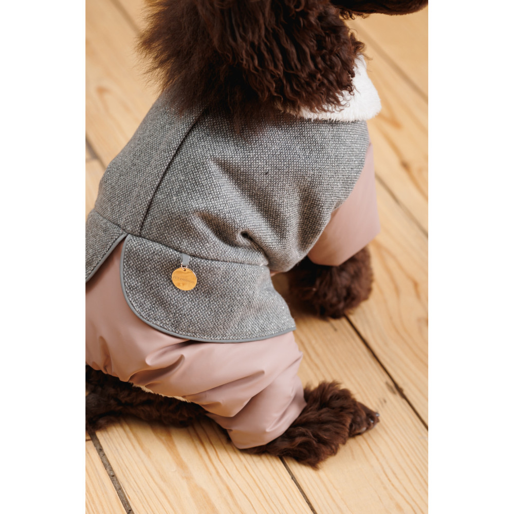 Костюм-комбінезон для собак-дівчаток Twiddy сіро-бежевого кольору – це елегантне та практичне вбрання, яке підкреслить стиль вашої улюблениці та забезпечить їй тепло й комфорт у холодну пору року. Модель створена для тендітних чотирилапих модниць, які цінують зручність та вишуканість.