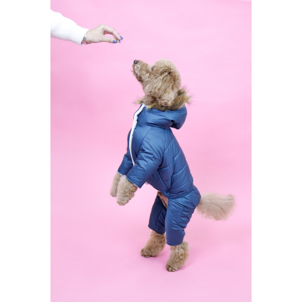 Зимовий комбінезон для собак на хутрі петрольного кольору AM-41 створений для того, щоб ваш улюбленець почувався тепло і комфортно навіть у найсуворіші зимові дні. Він поєднує стиль, функціональність і практичність, залишаючись зручним у щоденному використанні.
