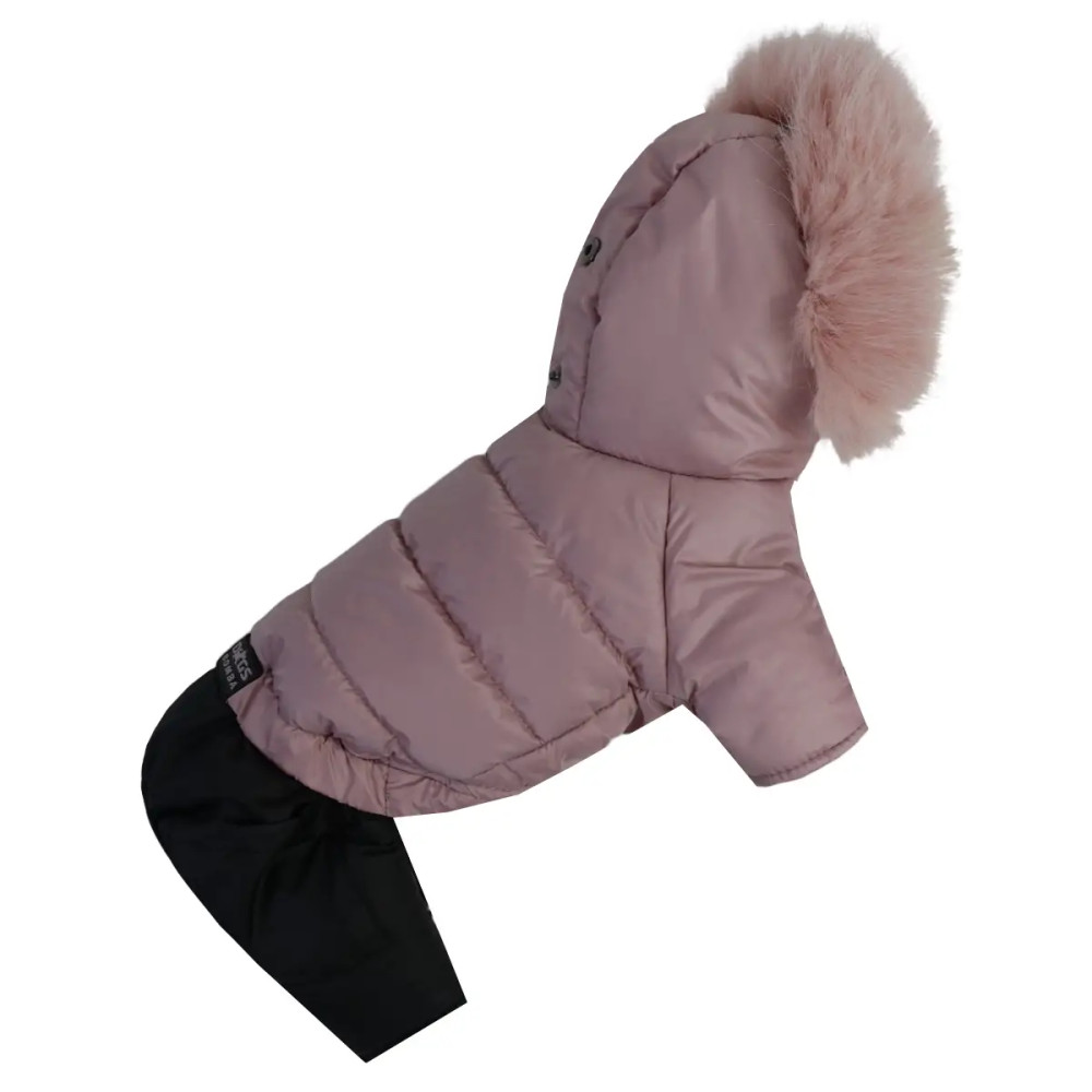 Зимовий комбінезон для собак на хутрі пудрового кольору AM-42 створений для того, щоб ваш улюбленець почувався тепло та комфортно під час зимових прогулянок. Ця модель поєднує сучасний дизайн, функціональність і надійний захист від холоду.