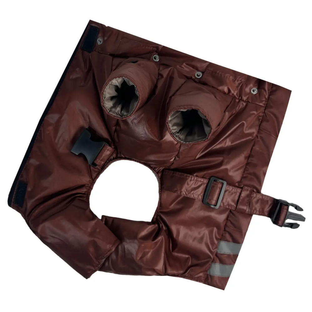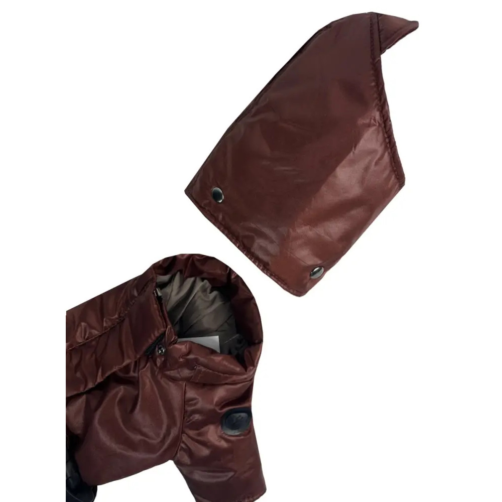 Зимовий комбінезон для собак з поясом шоколадного кольору R-59 – теплий та практичний варіант для щоденних прогулянок у холодний сезон.