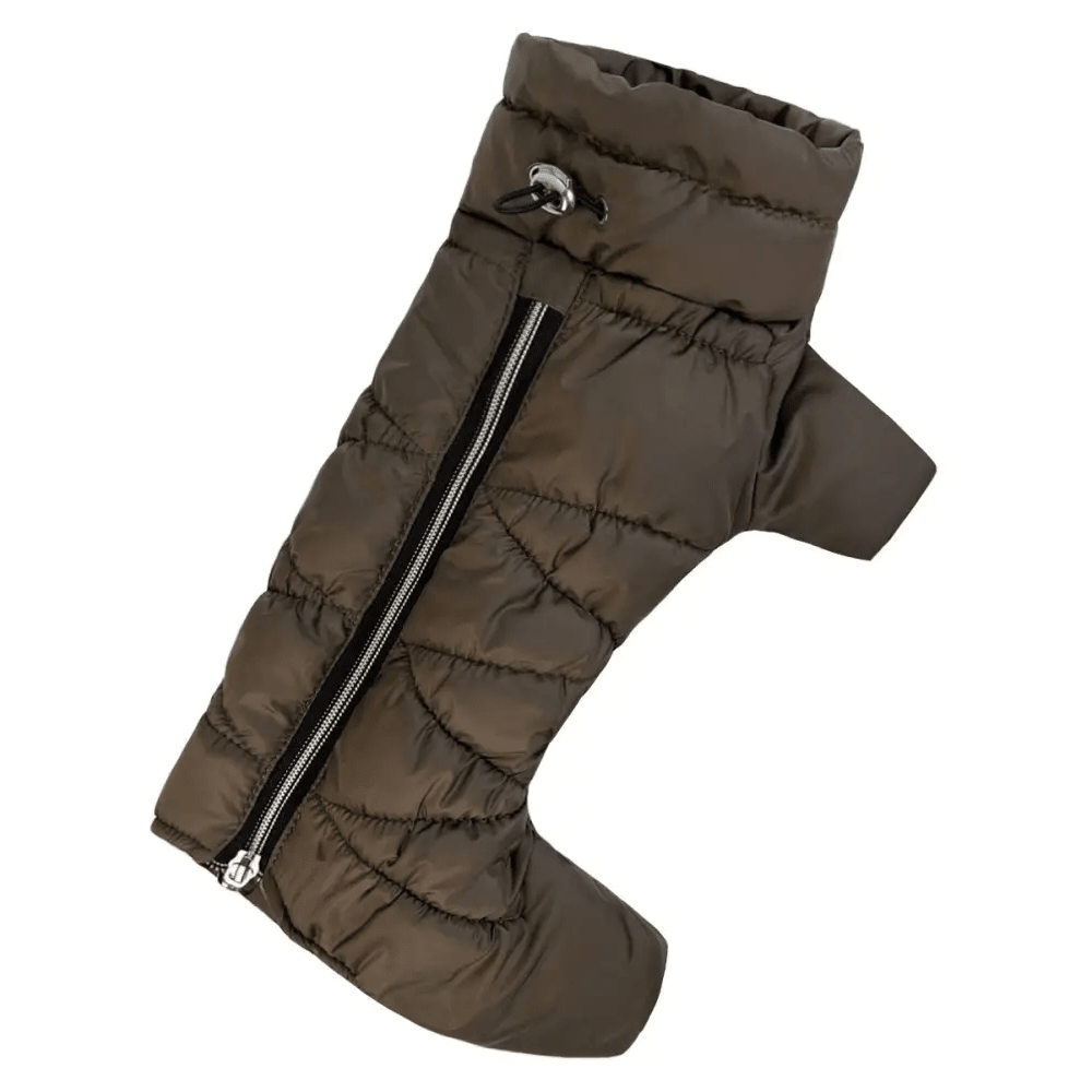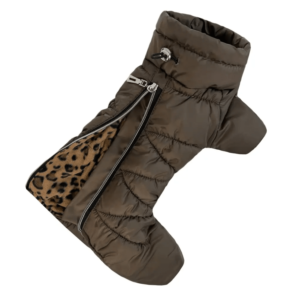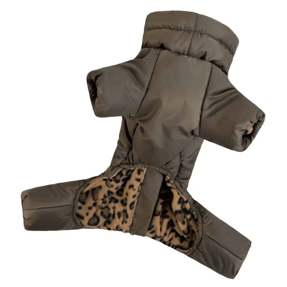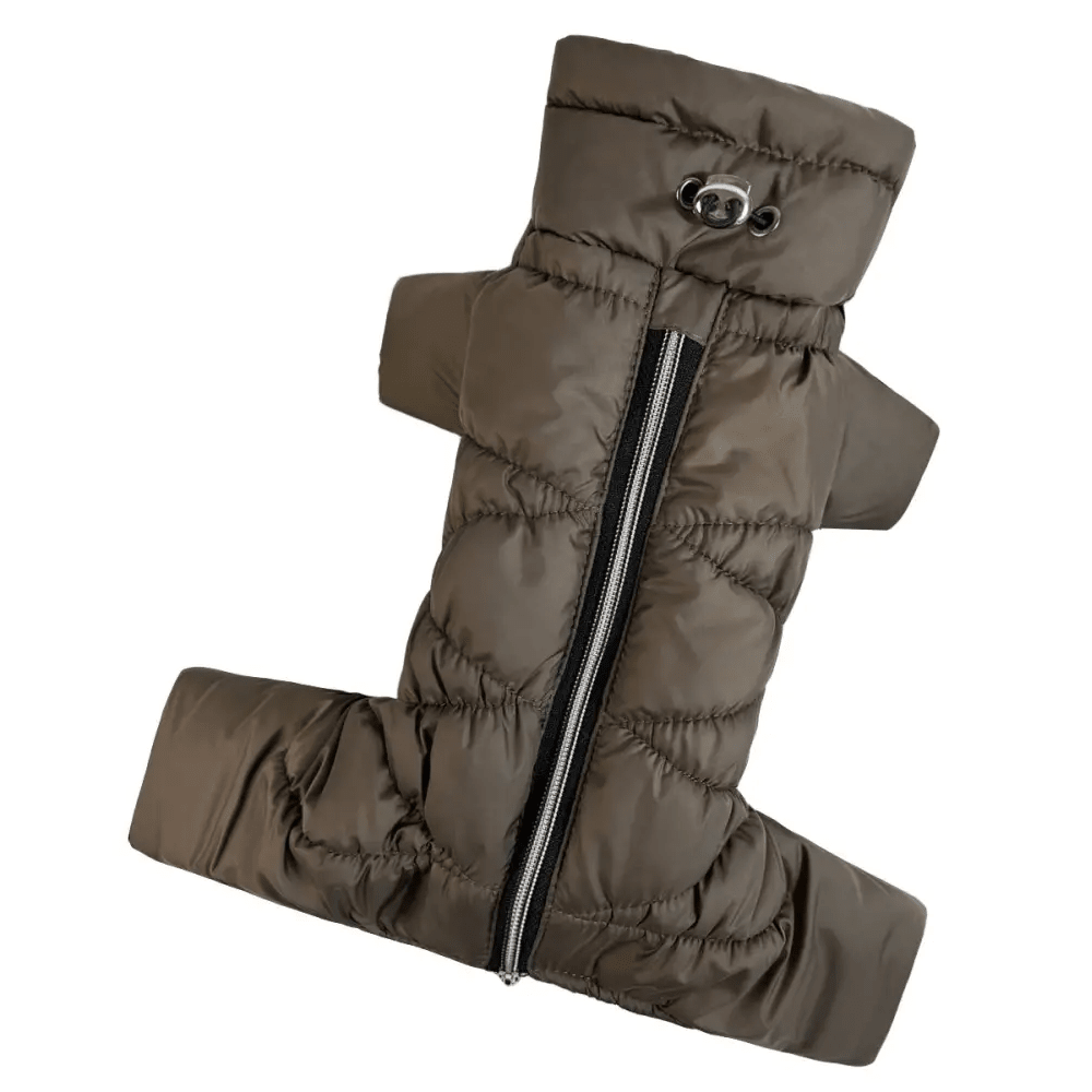 Зимовий комбінезон для собак Comfort R-47 коричневого кольору – це стильний і функціональний вибір для холодної пори року. Виконаний із водовідштовхувальної плащівки, комбінезон ефективно захищає від вологи та холодного вітру. Синтепоновий утеплювач і флісовий підклад забезпечують тепло й комфорт вашому собаці.