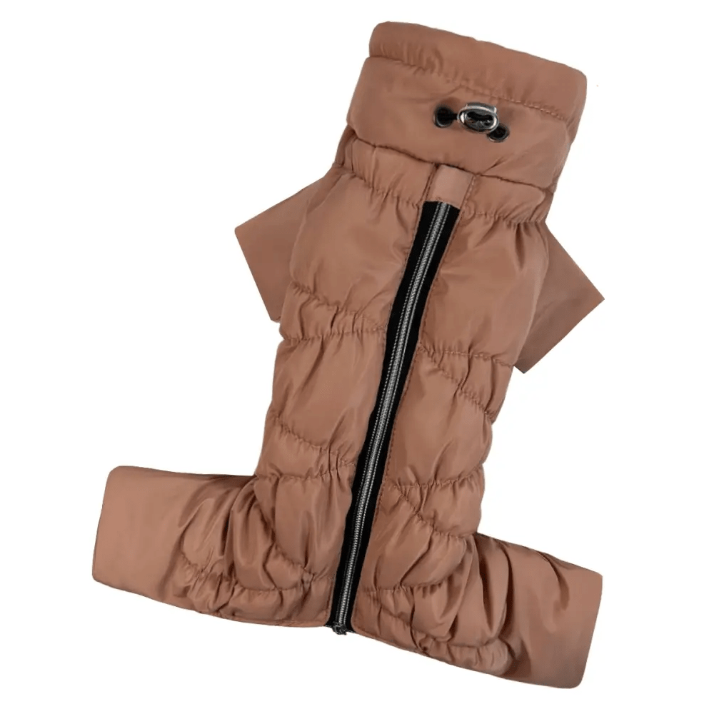 Комбінезон утеплений синтепоновим наповнювачем, що забезпечує надійний захист від холоду, а флісова підкладка додає затишку і робить комбінезон ще більш комфортним для вашого собаки.