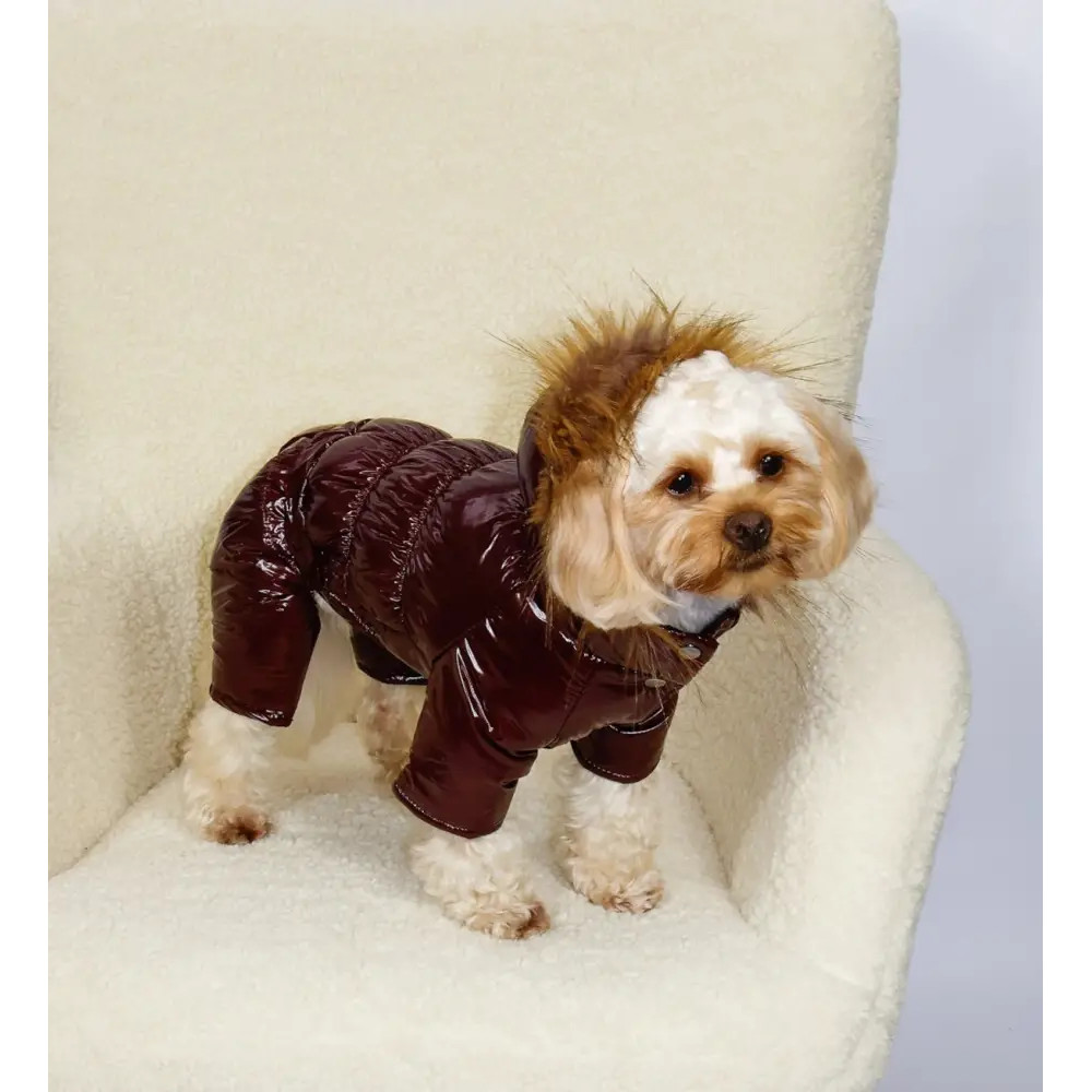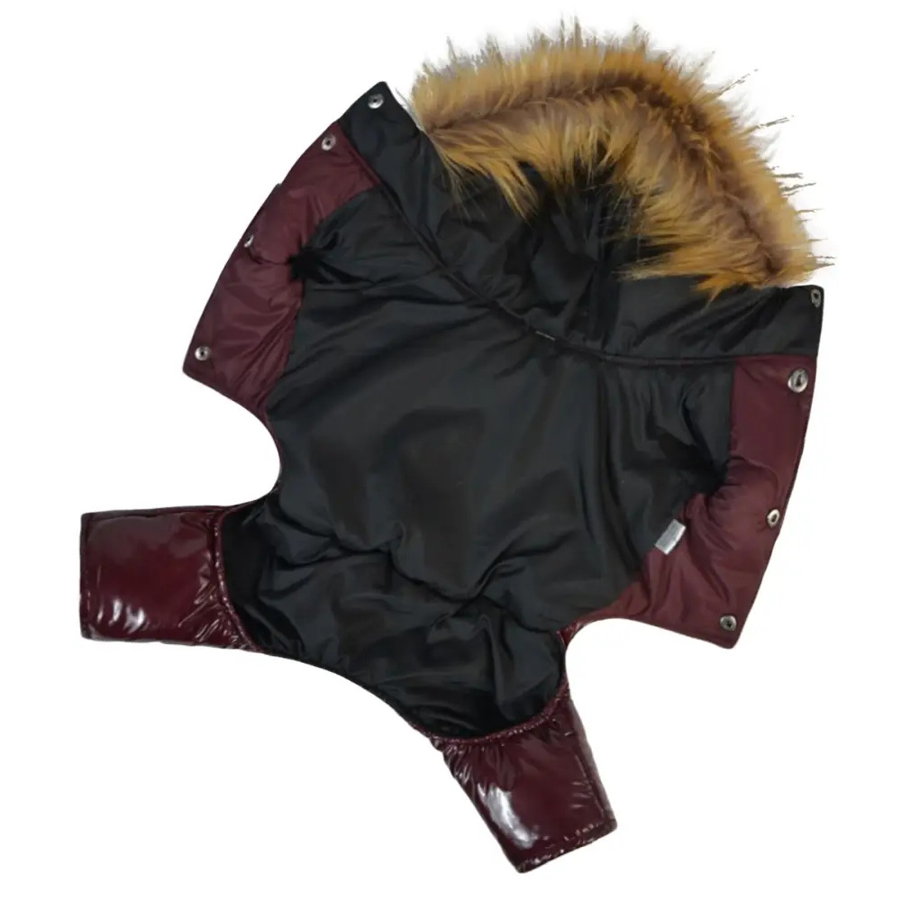 Зимовий комбінезон для собак A-85 лакований марсала – це стиль, тепло та комфорт для вашого улюбленця у прохолодну пору року.