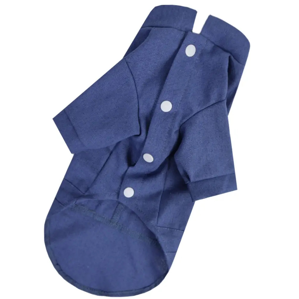 Сорочка має зручну застібку на кнопках, розташовану на животі, що значно спрощує процес одягання. Додатково передбачено регулювання обхвату грудей, завдяки чому сорочка ідеально сидить на собаці будь-якої комплекції. Практичний джинсовий колір додає образу сучасності й легко поєднується з іншими аксесуарами вашого улюбленця.
