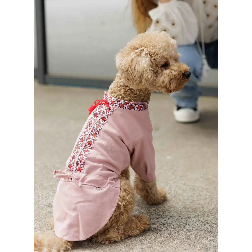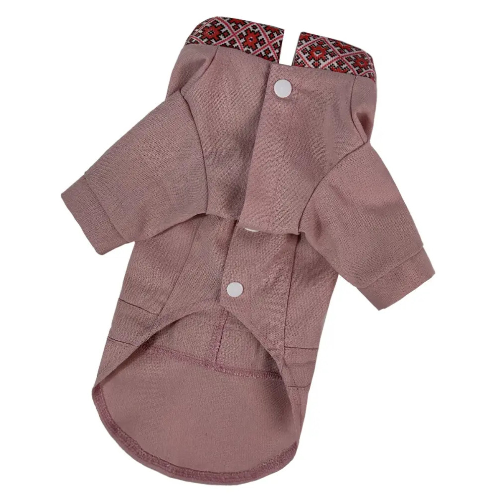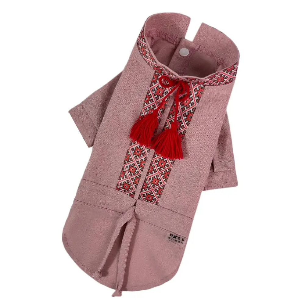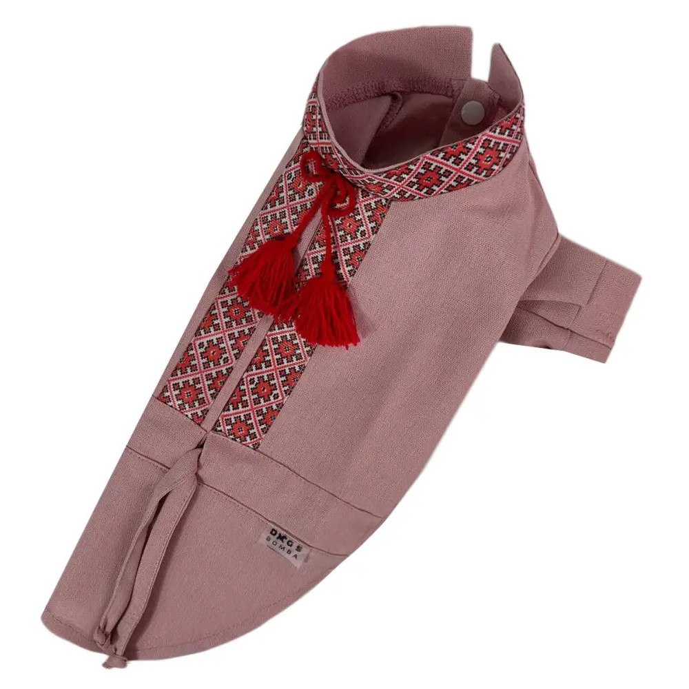 Вишиванка для собак з китицями RY-49 кольору пудра — оригінальний і стильний український наряд, створений спеціально для вашого улюбленця. Виготовлена з натуральної лляної тканини, ця сорочка не лише чудово виглядає, але й забезпечує комфорт навіть у теплу погоду, дозволяючи шкірі дихати.