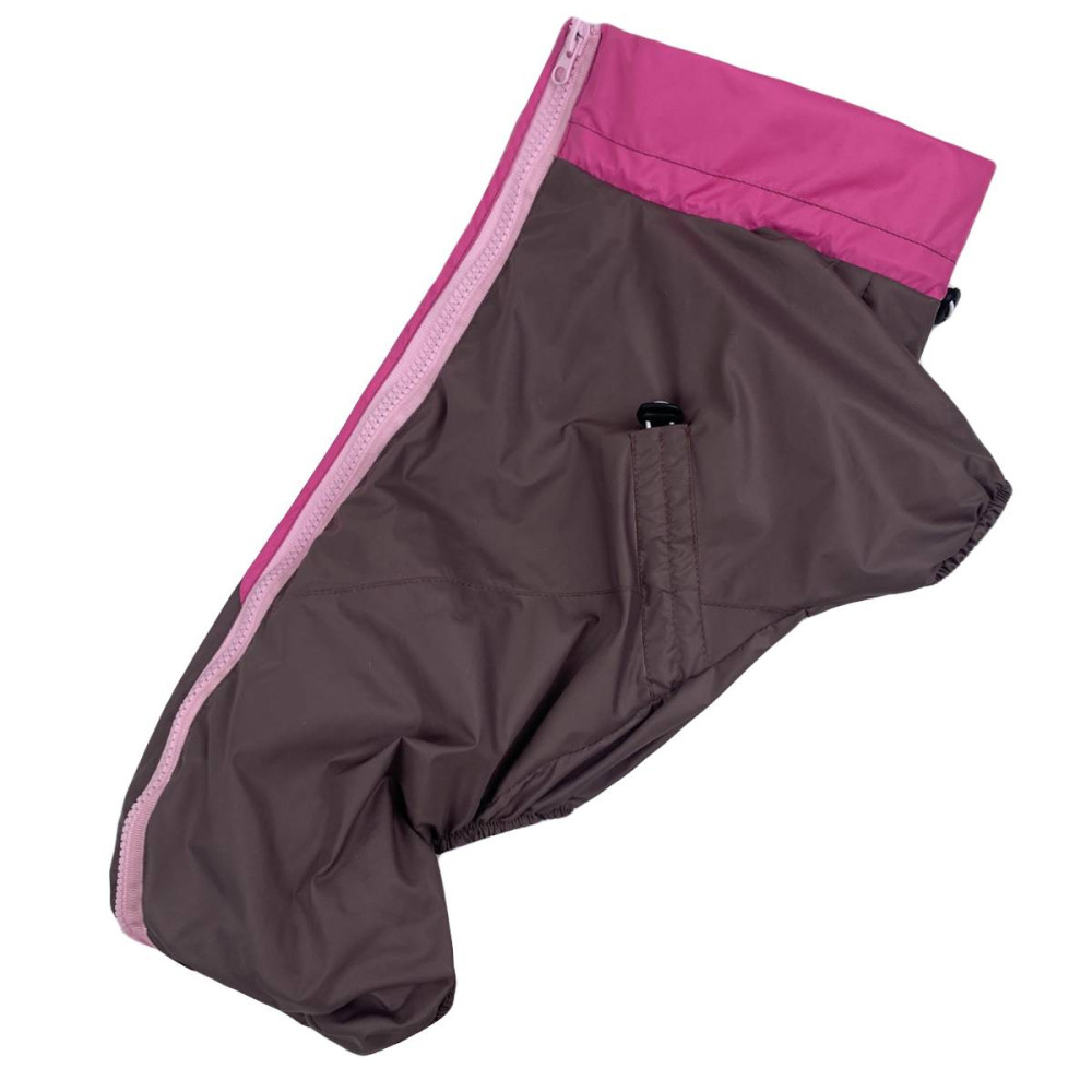 Водовідштовхувальний дощовик для собак Dogs Bomba MT-22 розроблений спеціально з урахуванням анатомічних особливостей такс. Модель виконана у комбінації шоколадного та малинового кольорів з практичної плащової тканини. Цей виріб надійно захищає шерсть тварини від вологи та бруду під час прогулянок у дощову погоду, а система регулювання забезпечує ідеальну посадку на нестандартну фігуру такси.
