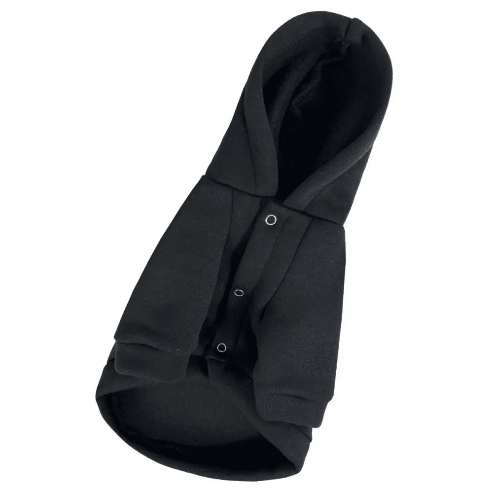 На спинці розташований текстильний принт, який додає оригінальності. Отвір для повідця на шиї дозволяє поєднувати толстовку зі шлейкою для зручності. Застібка на кнопках на животі спрощує процес одягання.