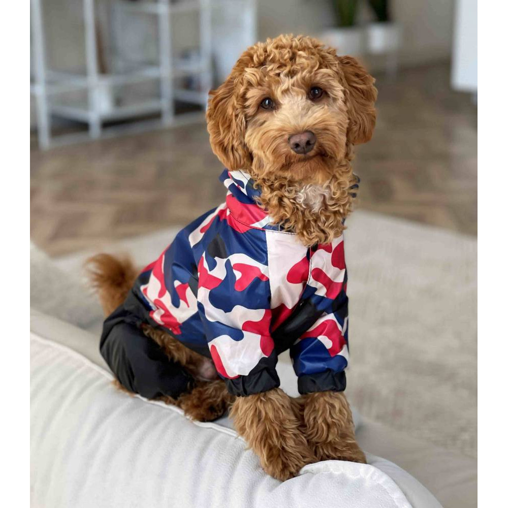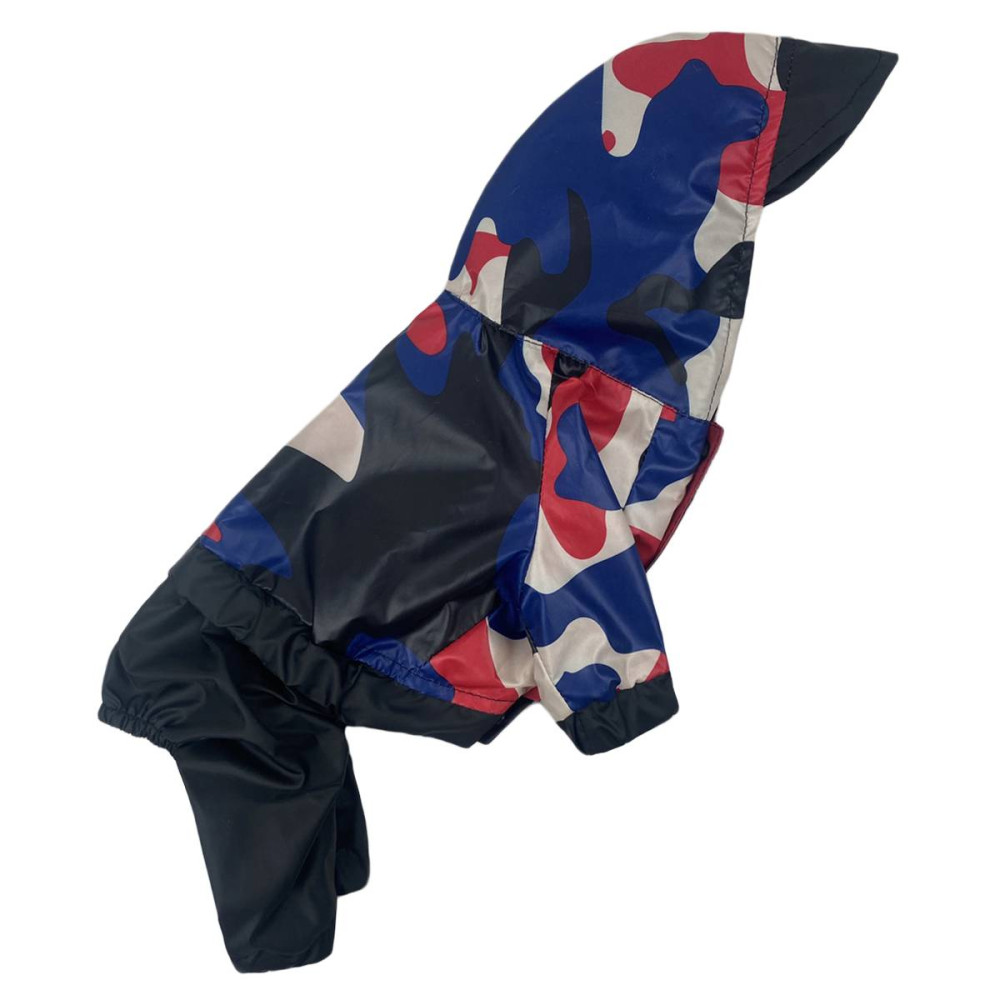 Водовідштовхувальний дощовик для собак Dogs Bomba M-63 у кольорі синій мілітарі створений для прогулянок у вологу та вітряну погоду. Виріб виконаний з якісної плащівки, яка використовується як для зовнішнього шару, так і для підкладки, що забезпечує подвійний захист від промокання. Модель має зручний крій унісекс, капюшон для захисту вух та голови, а також спеціальний отвір для кріплення повідця. Цей одяг ідеально підходить для весни та осені, а переглянути інші подібні моделі можна в категорії дощовики для собак.