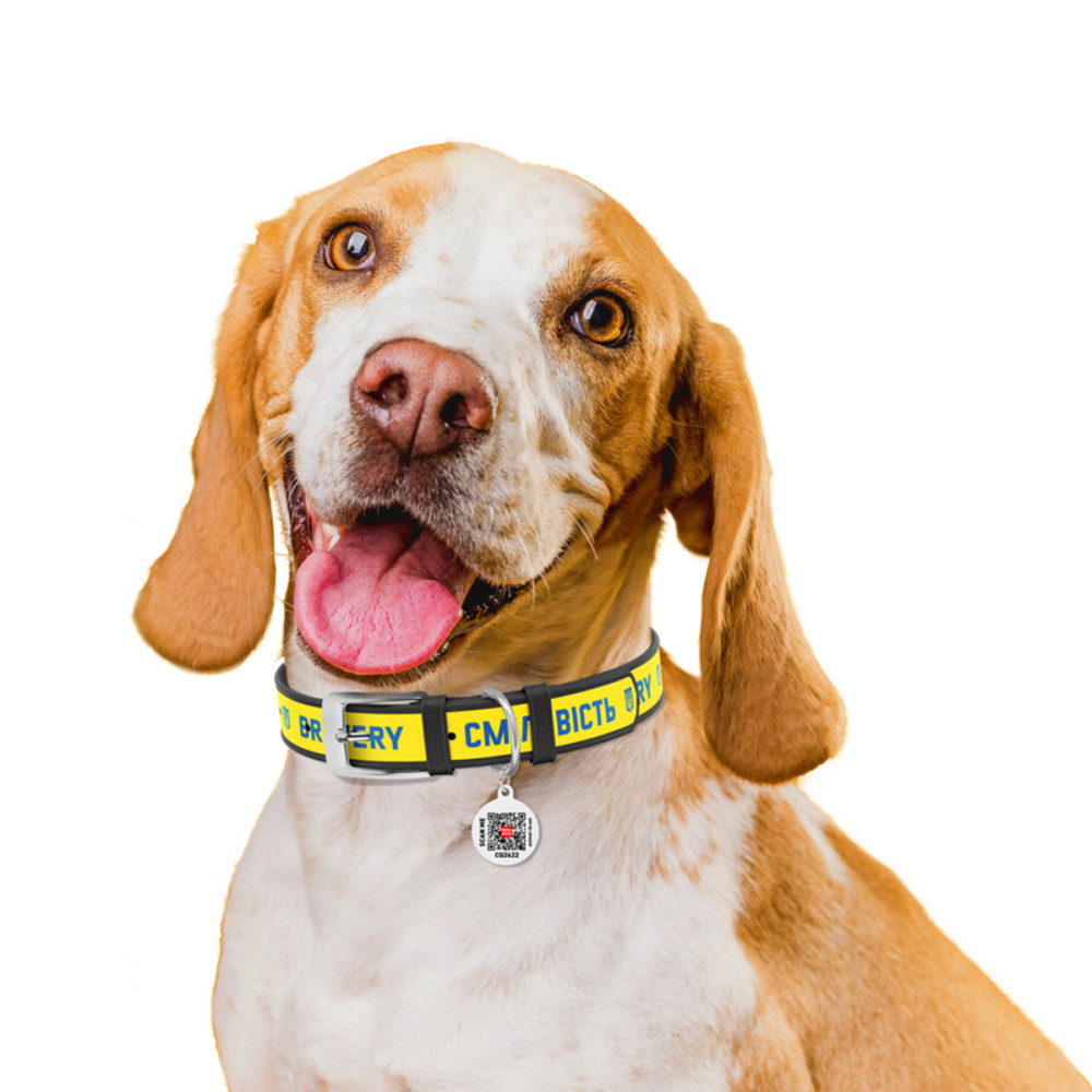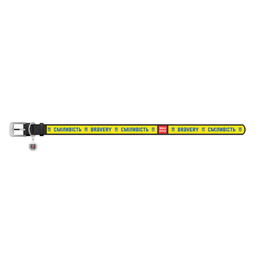 Шкіряний нашийник для собак WAUDOG Design з малюнком "Сміливість", чорна шкіра - це ідеальний вибір для собак будь-яких порід.