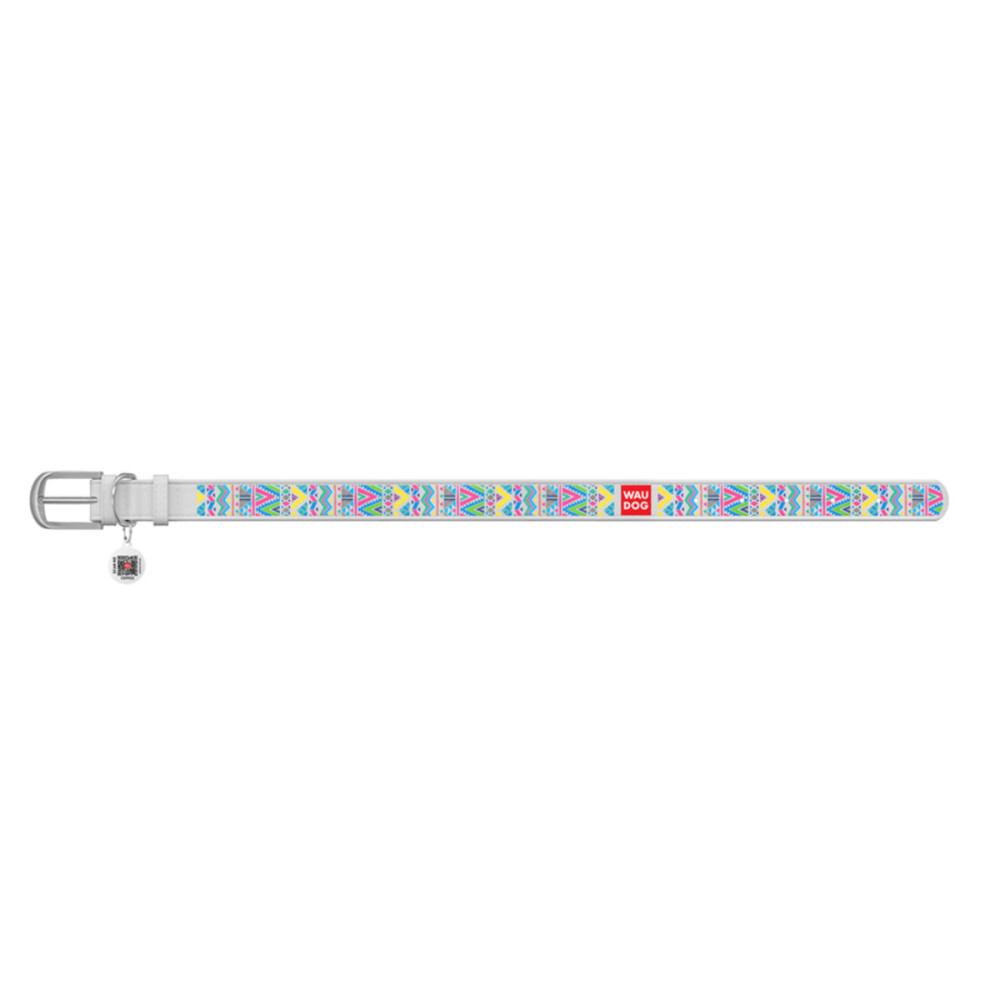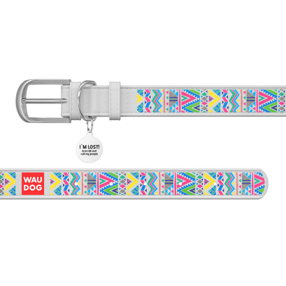 Шкіряний білий нашийник для собак WAUDOG Design з малюнком “Інді” та металевою пряжкою – це ідеальний вибір для собак будь-яких порід.