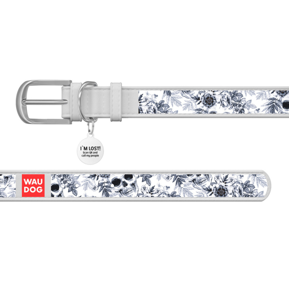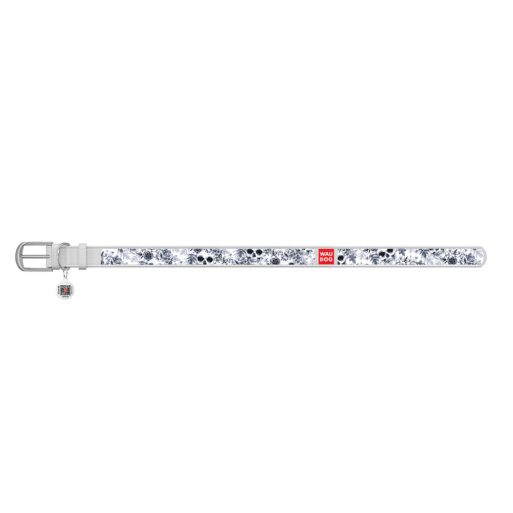 Шкіряний білий нашийник для собак WAUDOG Design з малюнком “Лінії” та металевою пряжкою – це ідеальний вибір для собак будь-яких порід.