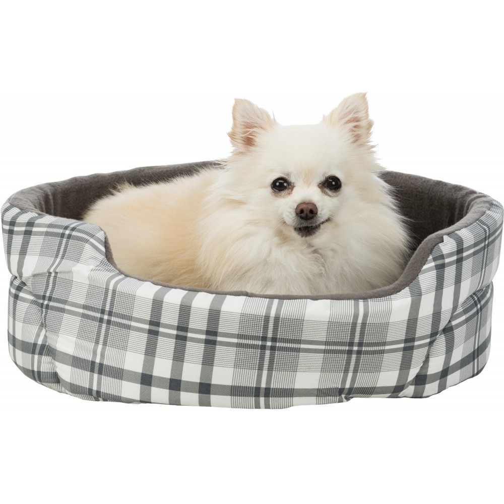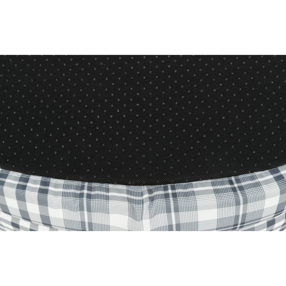 Основа лежака изготовлена из пенопласта, что создает стабильную и ортопедическую поверхность для сна. Двусторонняя подушка с одной стороны покрыта хлопком с клетчатым узором, а с другой – мягким флисом, позволяя адаптировать спальное место под сезон и предпочтения собаки.