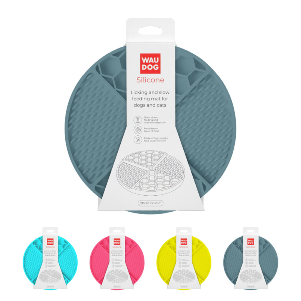 Коврик WAUDOG Silicone универсален. Вы можете использовать его с влажным кормом, мясными паштетами, натуральным йогуртом без добавок, арахисовой пастой для собак или размоченным сухим кормом.
