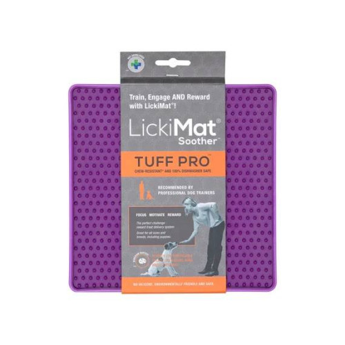 Серия Tuff PRO имеет усиленную твердую основу, что делает коврик устойчивым к попыткам грызть и идеальным для активных собак. Эта конструкция гарантирует долговечность и стабильность во время использования, а также позволяет безопасно мыть коврик в посудомоечной машине, что значительно упрощает уход.Преимущества лизательного коврика для собак LickiMat: