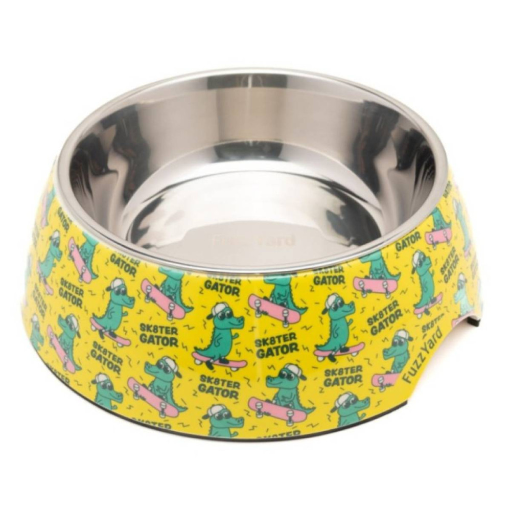 Миска для собак FuzzYard Sk8ter Gator изготовлена из прочного, безопасного для пищевых продуктов меламина и оснащена съемной вставкой из нержавеющей стали. Яркий желтый дизайн делает кормление веселым, а противоскользящее основание гарантирует, что посуда для собак останется на месте даже во время активного приема пищи.