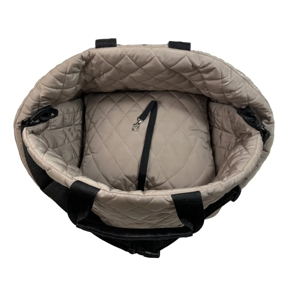 Сумка-автогамак S-31 бежевого цвета – это стильный, практичный и удобный выбор для поездок с вашим четвероногим другом.