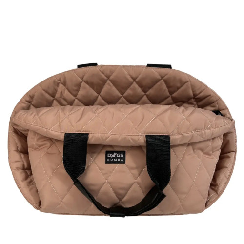 Модель выполнена из прочной водоотталкивающей ткани, которая легко очищается. Внутри расположена мягкая подушка, а специальный ремешок фиксирует собаку для безопасной поездки. Сумка крепится длинным ремнём, а стандартные размеры подходят для любого автомобильного сиденья.
