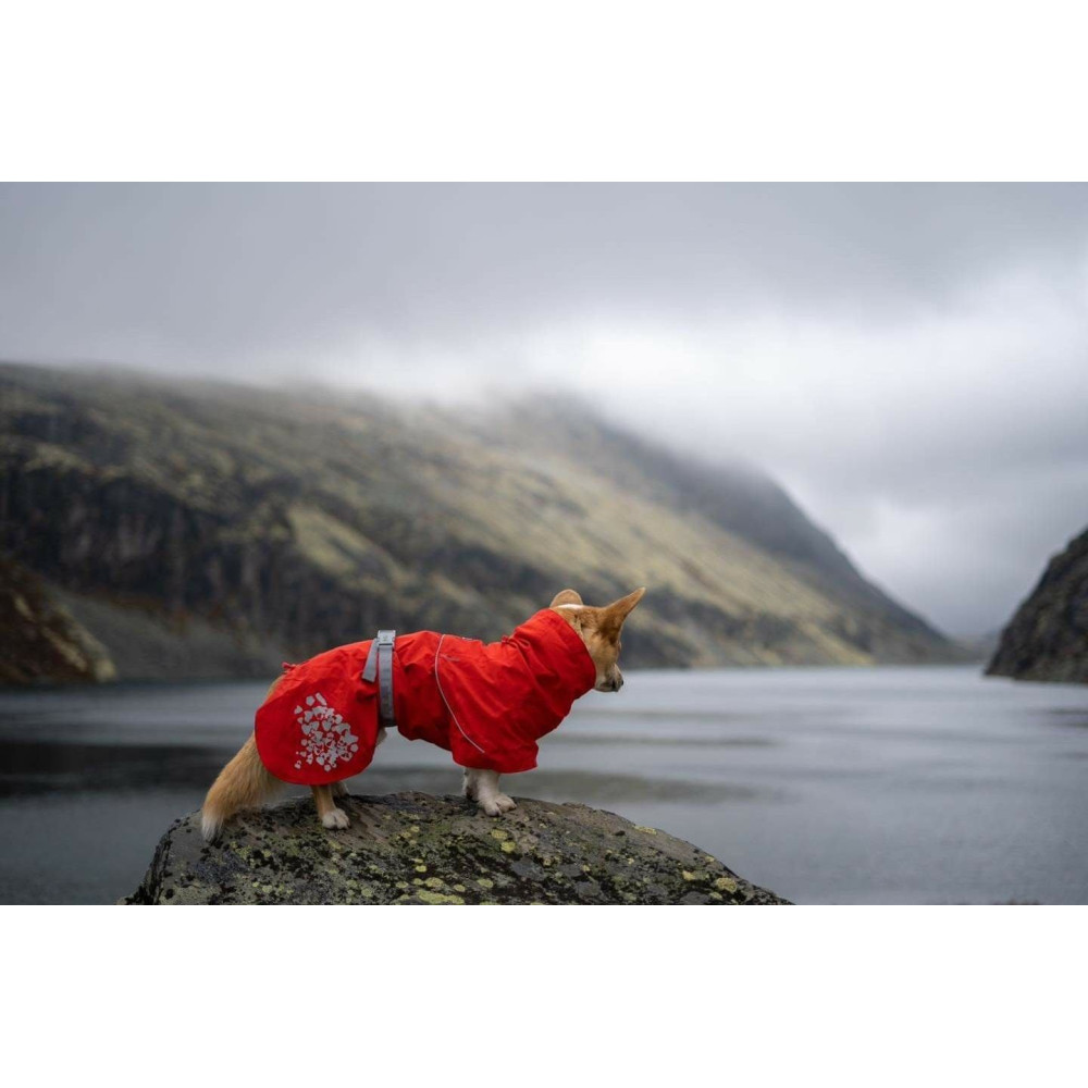 Hurtta Monsoon Coat ECO — лёгкий оранжевый дождевик для собак на дождь и ветер. Без подкладки, компактно складывается. Мембрана 10 000 мм и полностью проклеенные швы держат ливень. Воротник Rainstopper плотно закрывает шею, отверстие для поводка застёгивается на кнопку и не пропускает воду. Посадка настраивается по длине спины и талии, петли на задние лапы стабилизируют куртку на бегу. Светоотражающие элементы повышают видимость. Экоматериалы, fluorocarbon-free. Цвет: оранжевый.