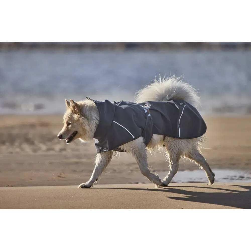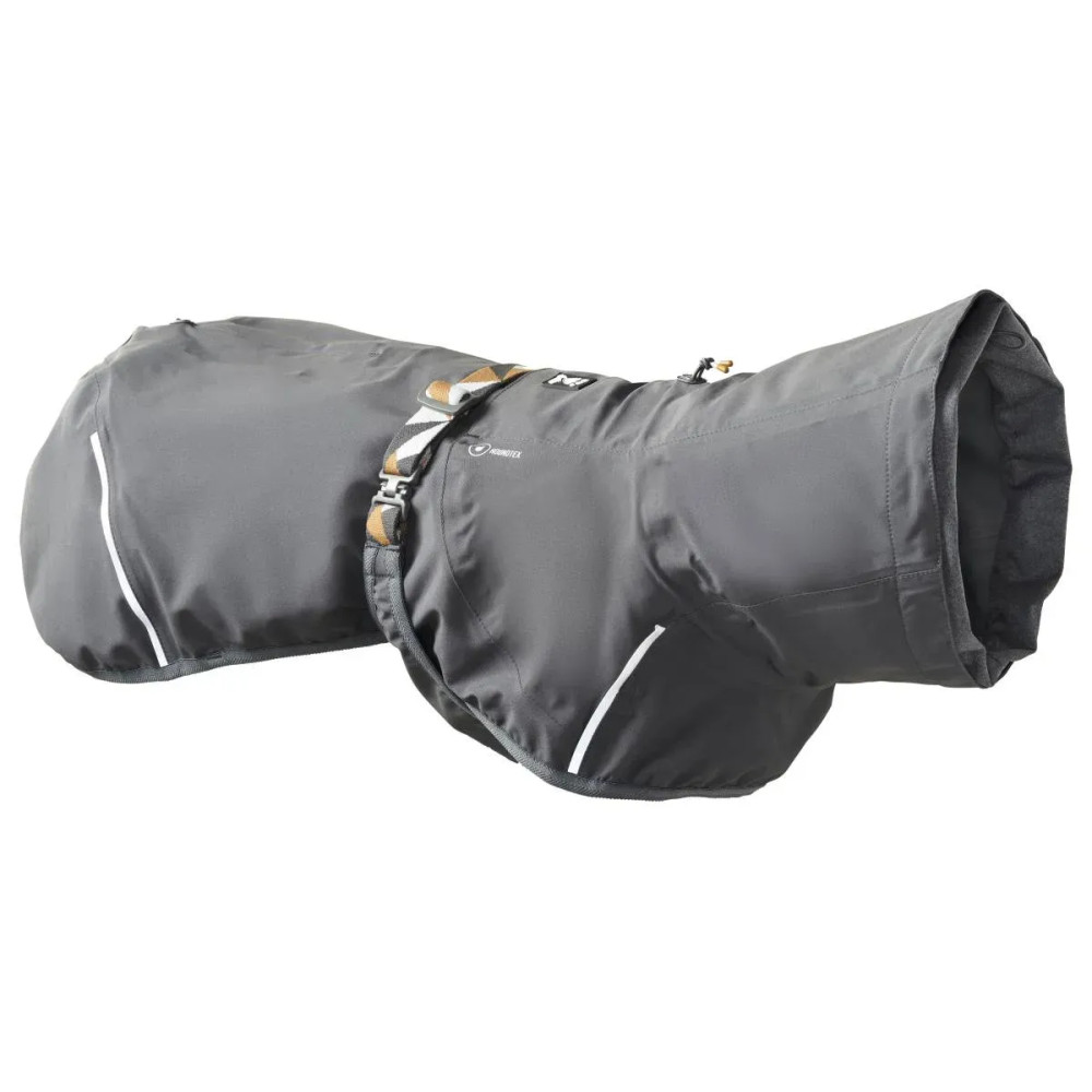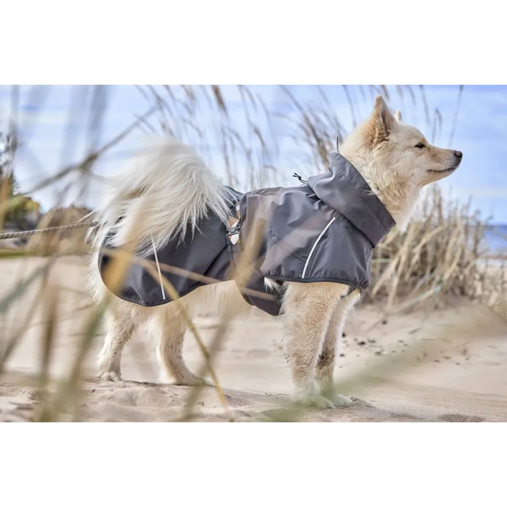 Hurtta Mudventure Coat ECO — лёгкий серый дождевик для собак без подкладки. Компактно складывается, не перегревает в тёплую погоду и защищает от дождя, ветра и грязи. Внутренняя сторона ламинирована мягкой водонепроницаемой мембраной, все швы полностью проклеены.