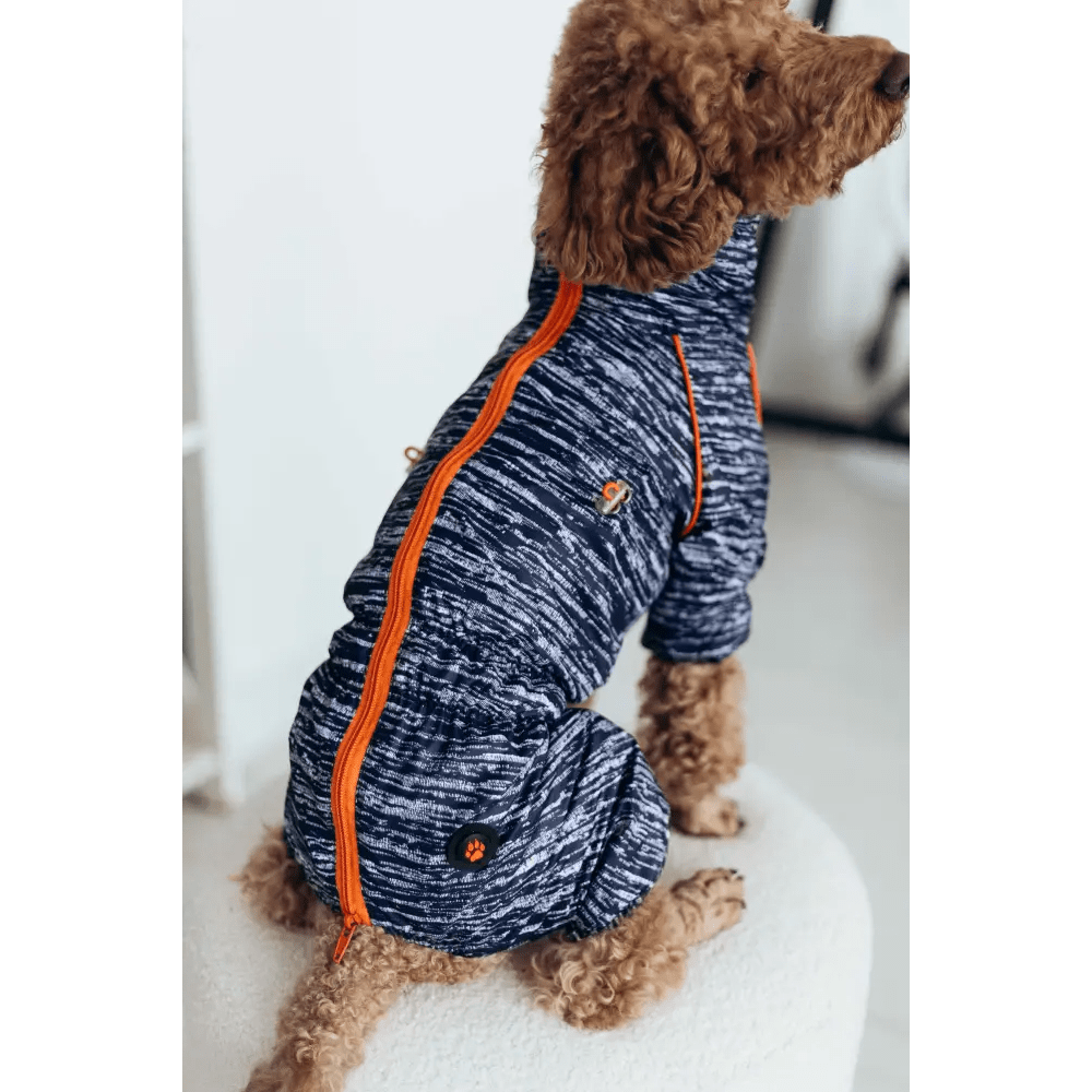 Главная застёжка в виде молнии расположена на спине, что значительно упрощает процесс надевания. Благодаря регулируемым утяжкам на шее и груди модель легко подстраивается под индивидуальные особенности собаки, обеспечивая удобную посадку без ограничения движений. Стильный рябой цвет добавляет оригинальности и помогает вашему питомцу выделиться среди других четвероногих.