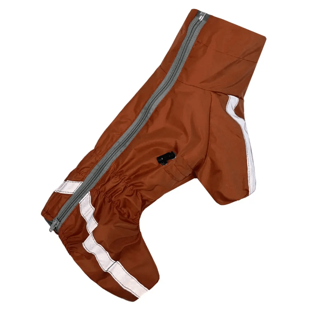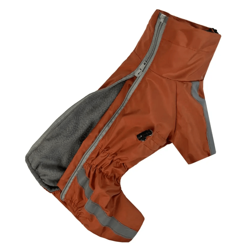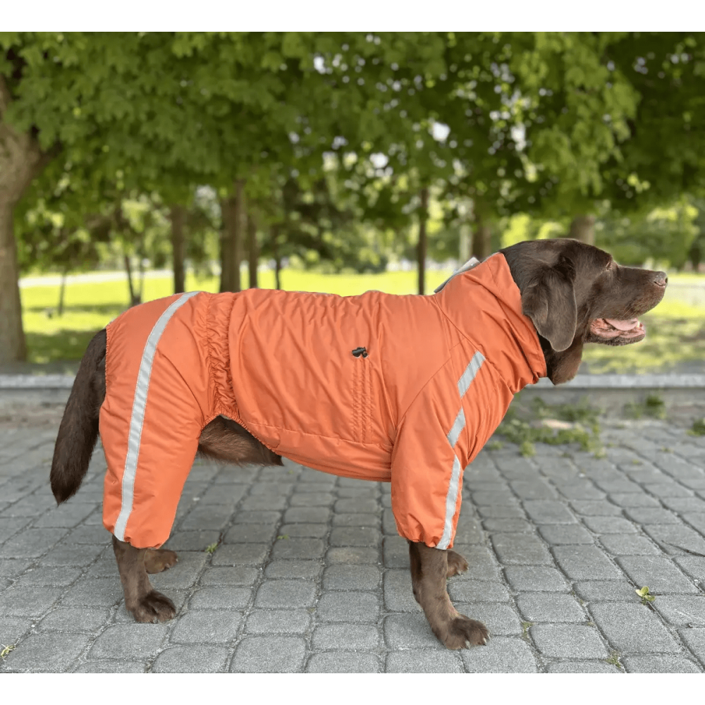 Дождевик для собак Dogs Bomba Спорт MF-31 оранжевого цвета изготовлен из плотной водоотталкивающей плащевки и утеплен мягким флисом. Модель разработана для защиты животного от осадков, грязи и ветра, обеспечивая комфортную температуру тела. Конструкция предусматривает застежку-молнию на спине для быстрого надевания и специальные резинки на штанинах для плотной фиксации. Яркий цвет повышает заметность собаки в темное время суток. Отличный вариант для влажной весны или осени. В холодное время года рекомендуем использовать как дополнительный слой под зимнюю одежду для собак.