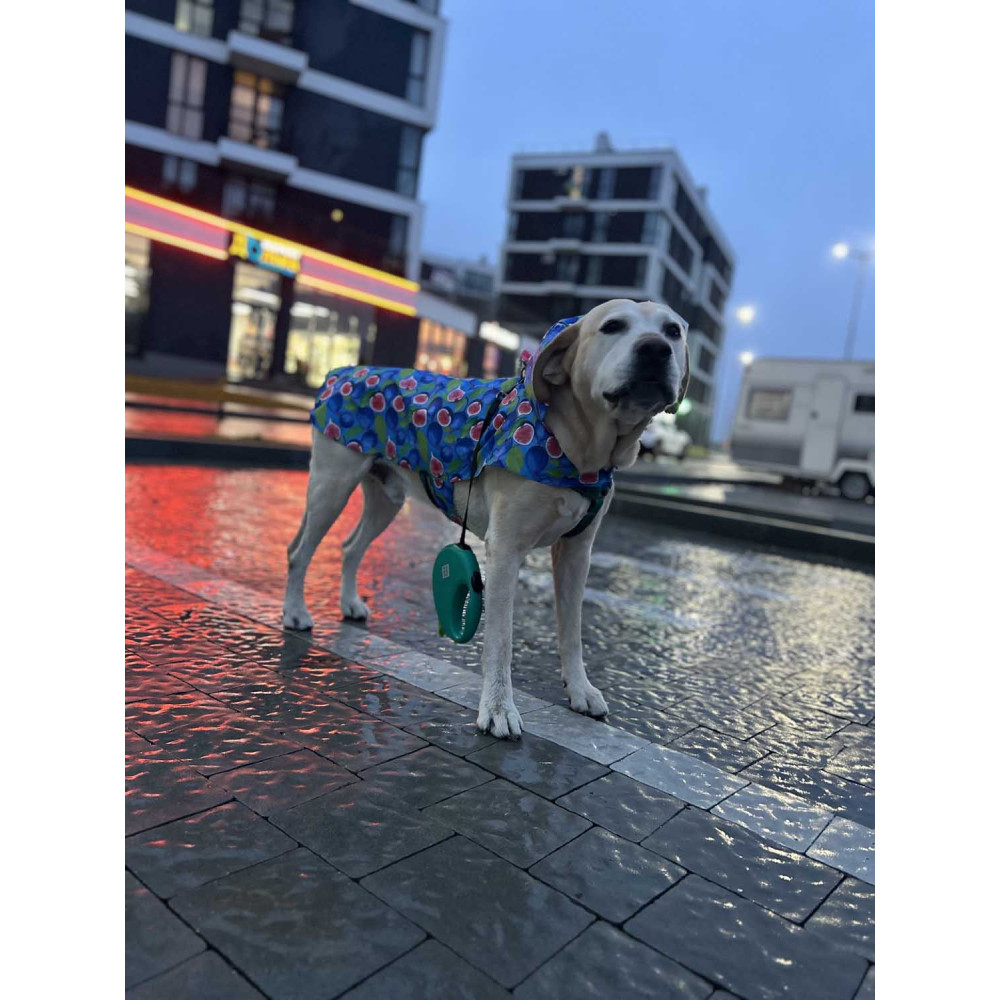 Дождевик-накидка для собак WAUDOG Clothes с капюшоном, рисунок «Инжир» — это стильная и практичная одежда для вашего питомца, которая защитит его от дождя и ветра. Выполнен из лёгкого, но прочного водоотталкивающего материала, этот дождевик обеспечит комфорт во время прогулок в любую погоду.
