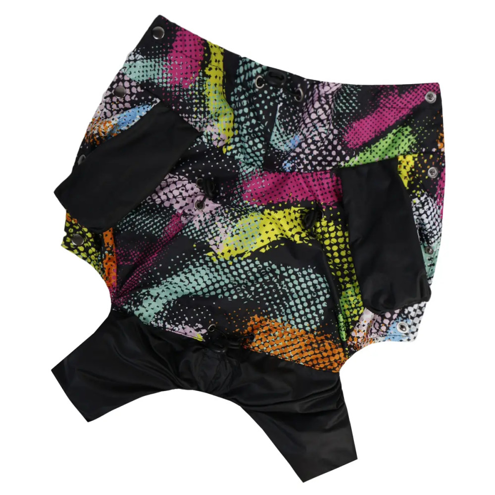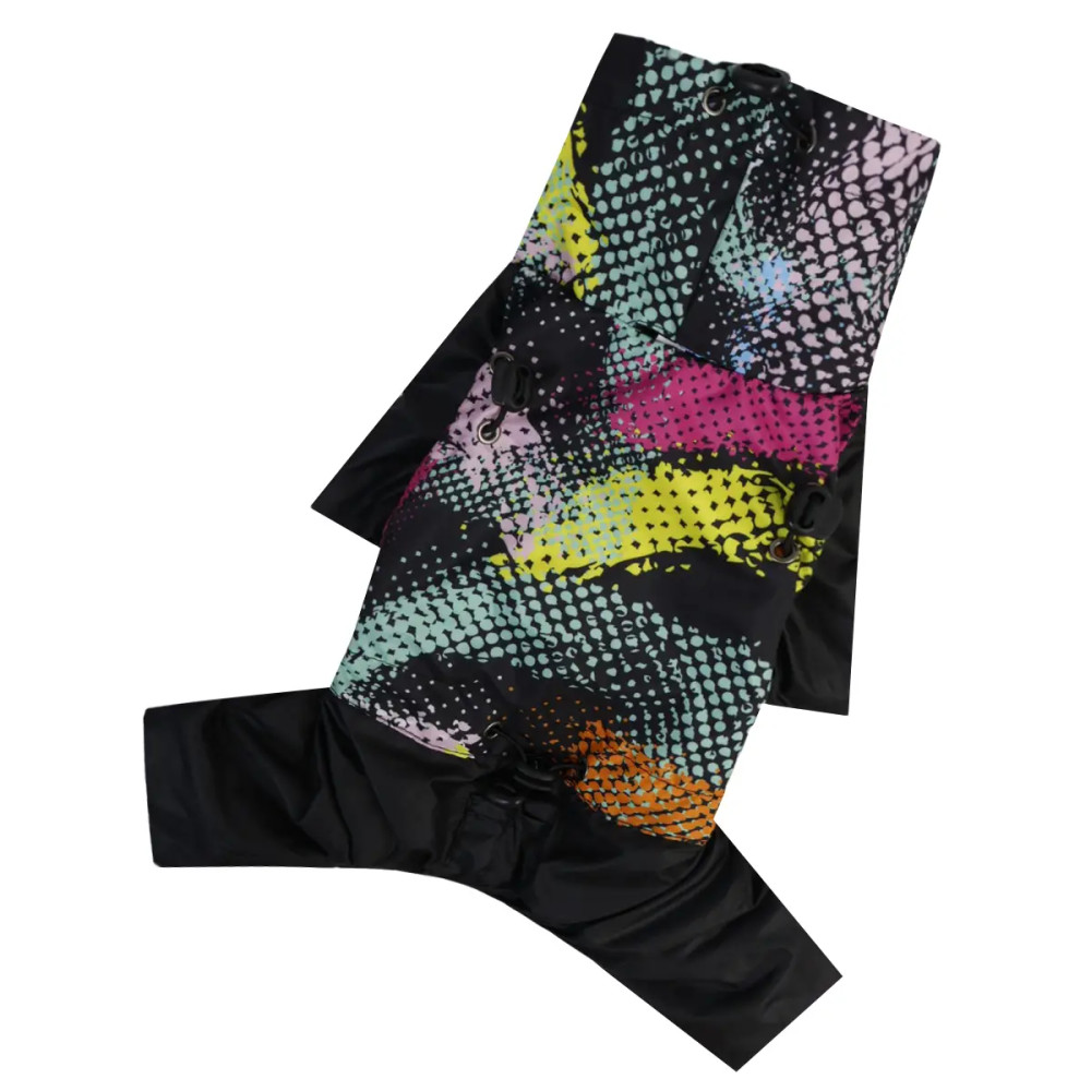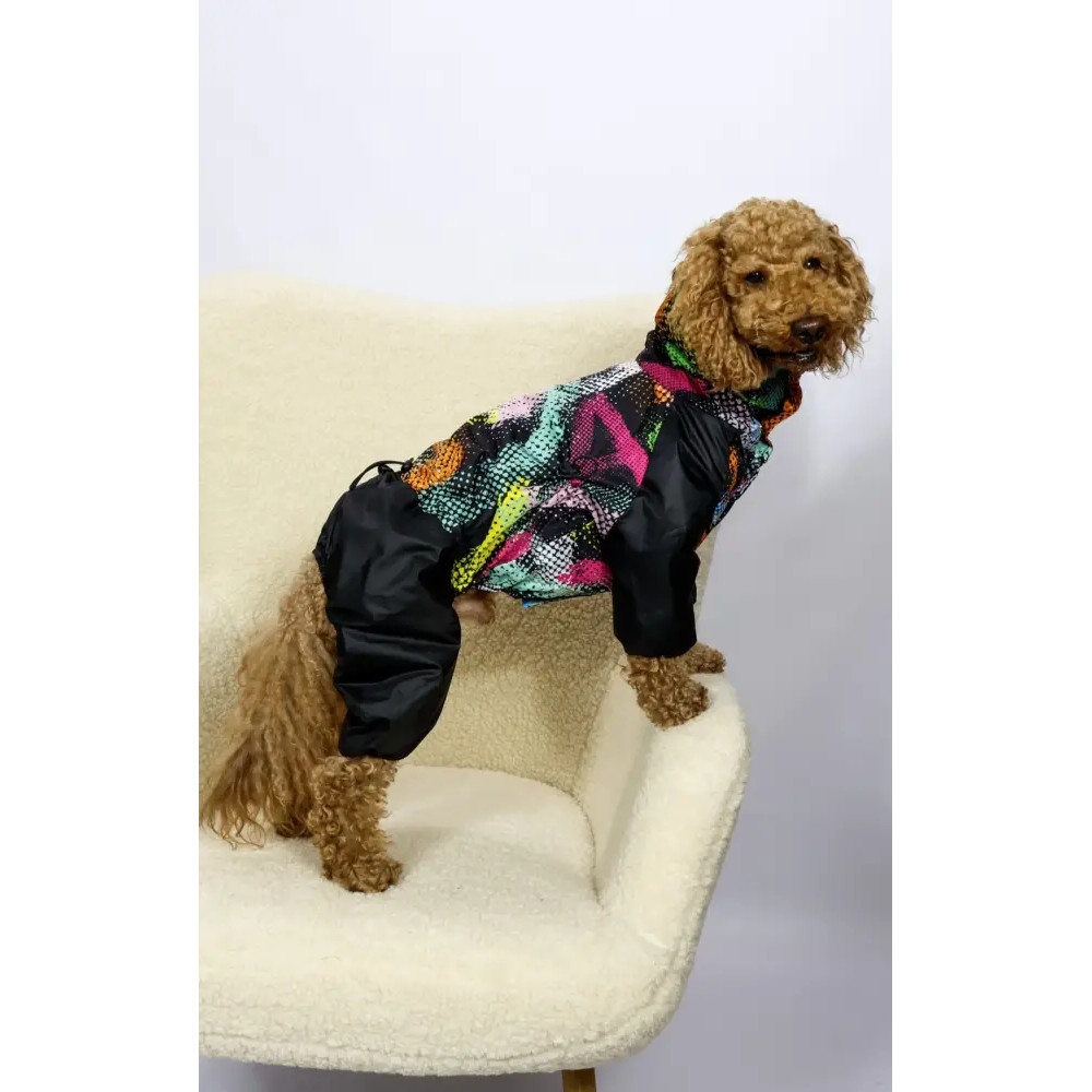 Эта одежда для собак с ярким абстрактным дизайном станет надёжным решением для прогулок в любую погоду.