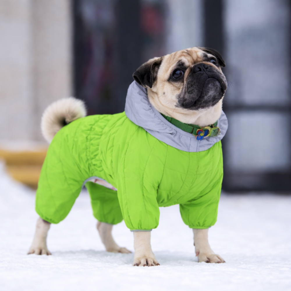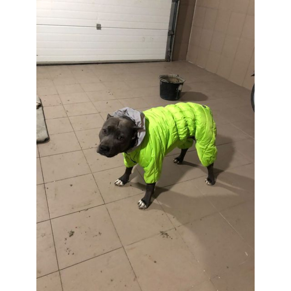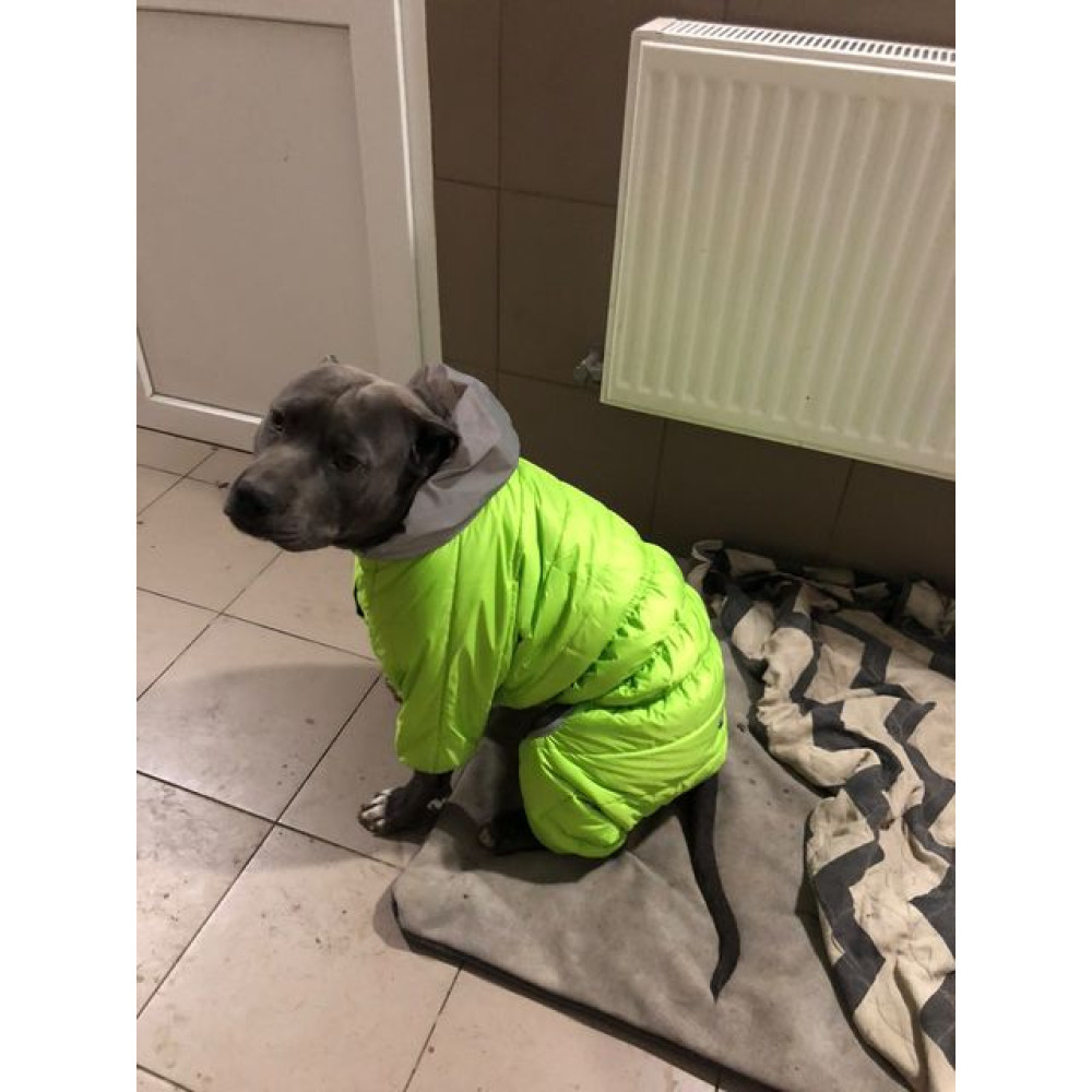 Уникальной особенностью модели является использование специальной липучки, которая выполняет роль надежной застежки, но при этом совершенно не цепляется за собачью шерсть, предотвращая рывки и боль. Также комбинезон для собак оснащен светоотражающим капюшоном, который обеспечивает высокую заметность питомца в свете фар, повышая безопасность вечерних выгулов.