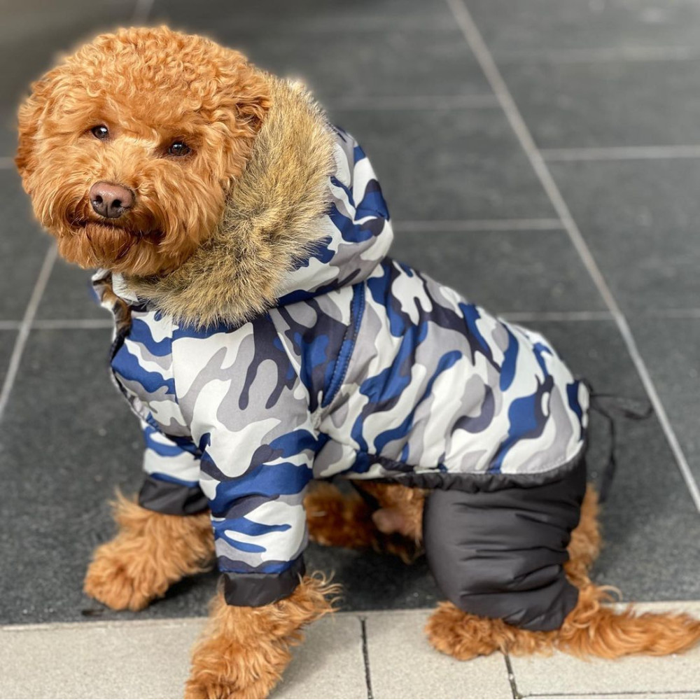 Возможность продлить время прогулки вашего домашнего питомца позволит комбинезон ТМ DOGS BOMBA со съемными штанами голубой камуфляж СО-20.