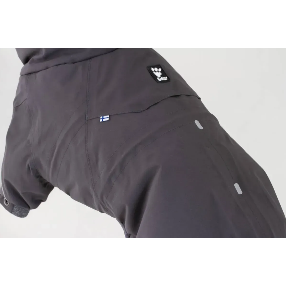 Hurtta Extreme Overall в классическом сером цвете — это флагманская модель зимней одежды от финского бренда, созданная для экстремально низких температур. Этот комбинезон обеспечивает максимальную защиту от холода, ветра и снега, закрывая 90% тела собаки, включая лапы и шею. Серый цвет очень практичен для городских условий, так как на нем меньше заметна грязь.