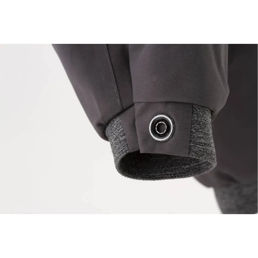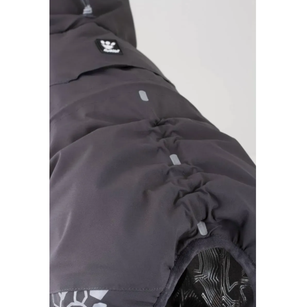 - Водонепроницаемость: Внешняя серая ткань имеет ламинированное покрытие (10 000 мм), которое защищает от мокрого снега и дождя, оставаясь при этом дышащим.