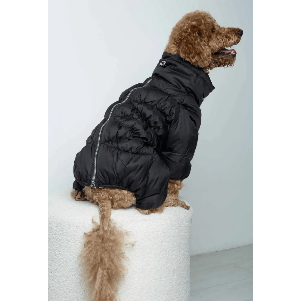 Застёжка на молнии на спине упрощает процесс надевания, а регулятор объёма шеи позволяет настроить комбинезон под размеры вашего питомца. Отверстие для поводка на шее делает использование шлейки максимально удобным.