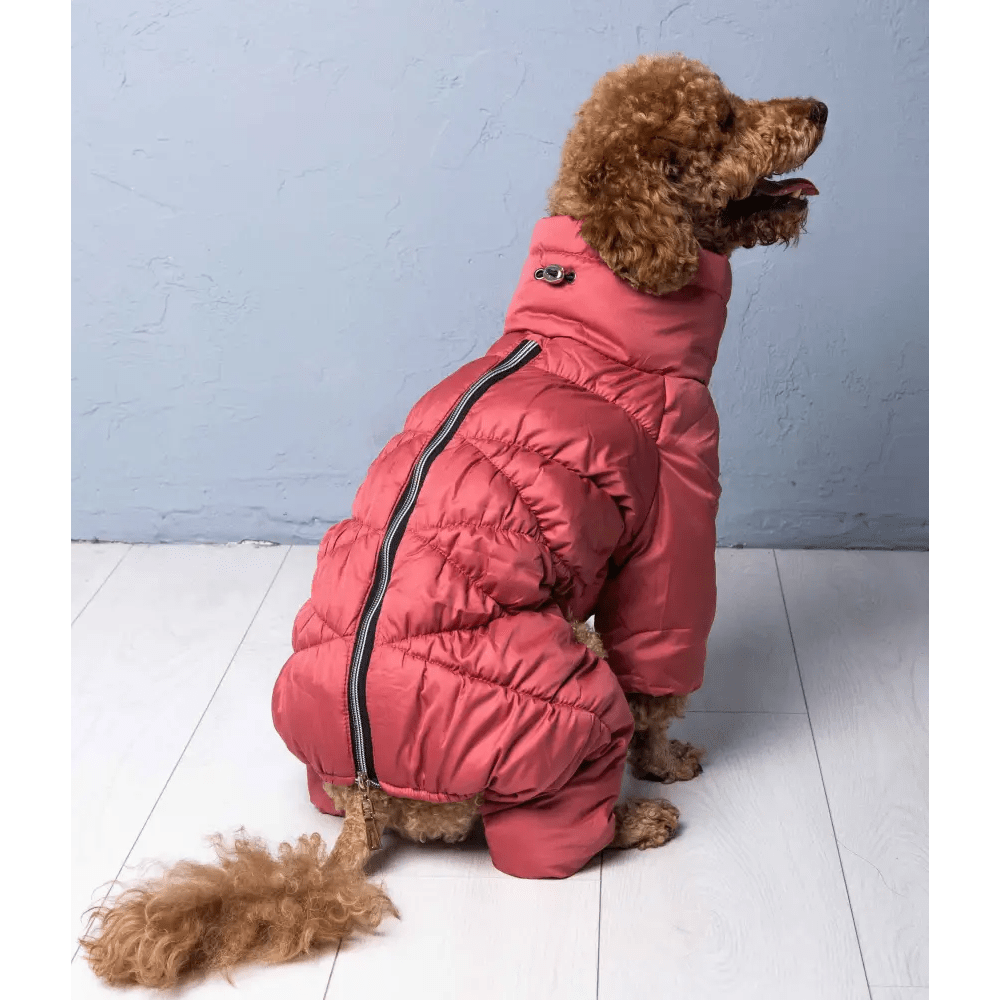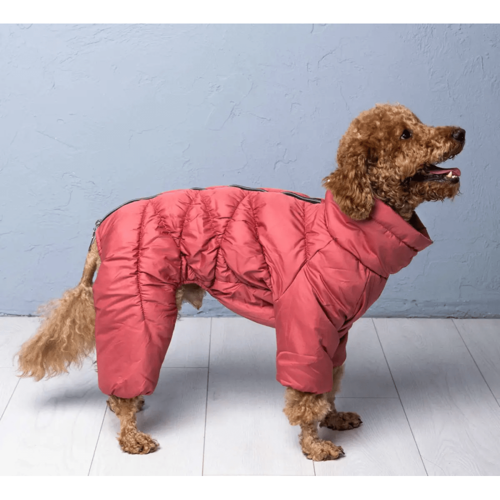Зимний комбинезон для собак Comfort R-50 терракотового цвета – отличный выбор для холодного времени года. Выполненный из водоотталкивающей плащевки, комбинезон надёжно защищает от влаги, позволяя вашей собаке оставаться сухой и комфортной во время прогулок в снег или дождь.