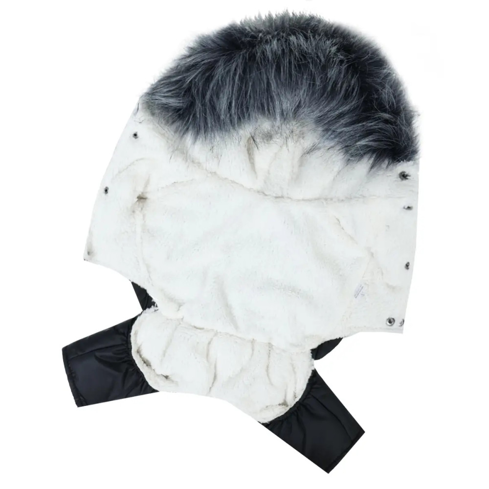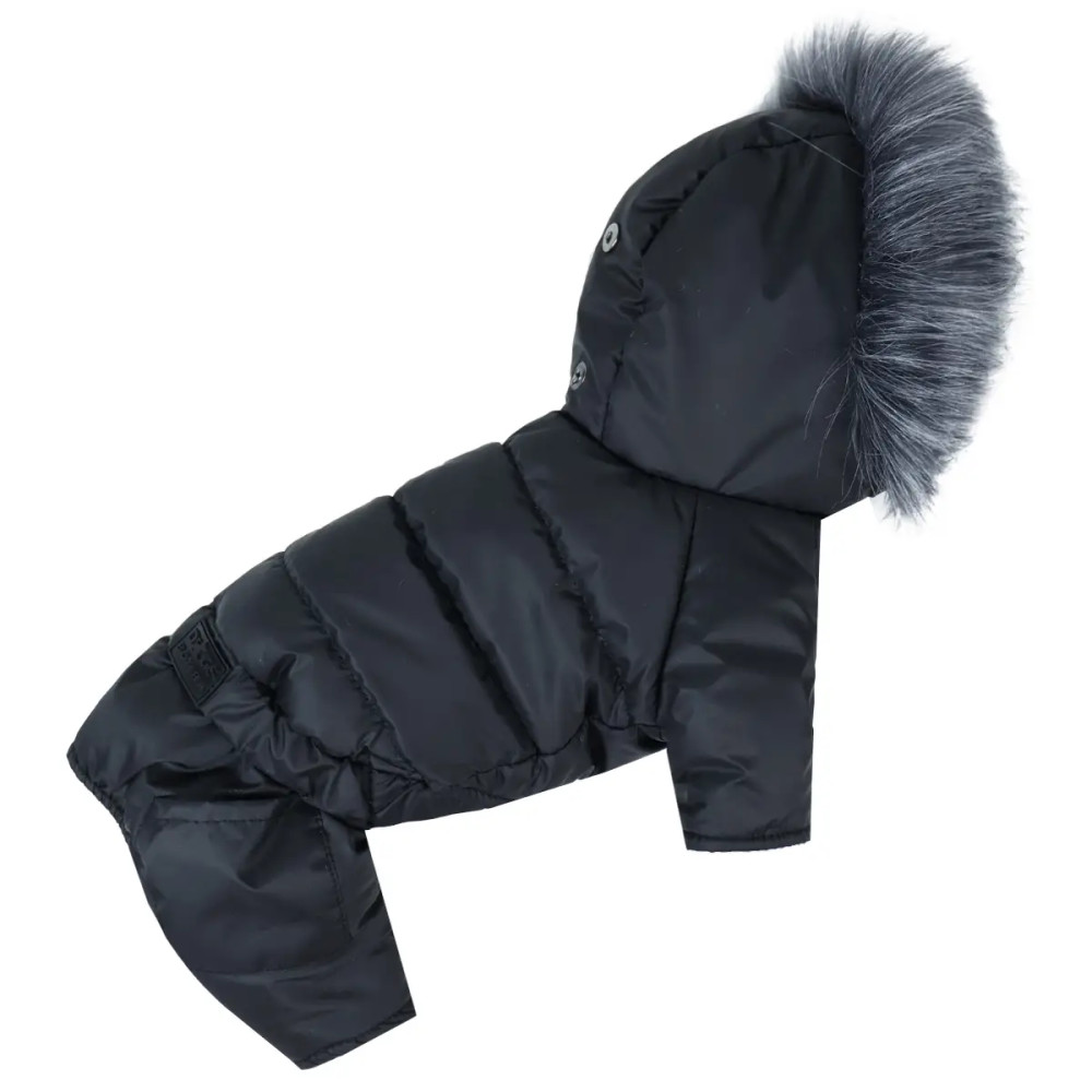Зимний комбинезон для собак на меху черного цвета AM-43 – практичный и стильный выбор для холодного сезона. Он защищает питомца от ветра, влаги и низких температур.