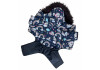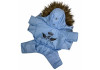 Воротник-стойка и капюшон с кнопкой-фиксатором обеспечивают дополнительную защиту от ветра и холода. На шее предусмотрено отверстие для поводка, что делает комбинезон практичным и удобным для прогулок.