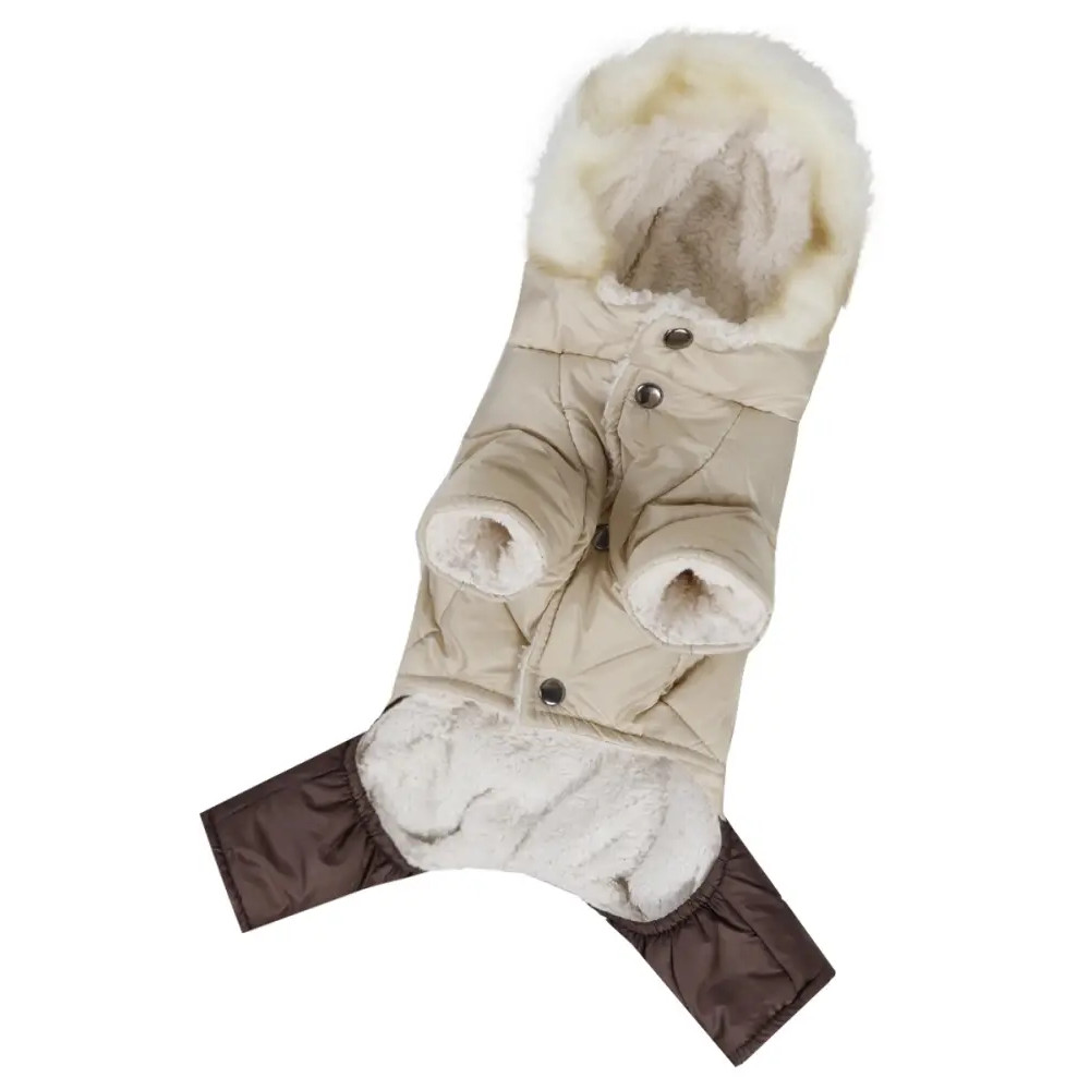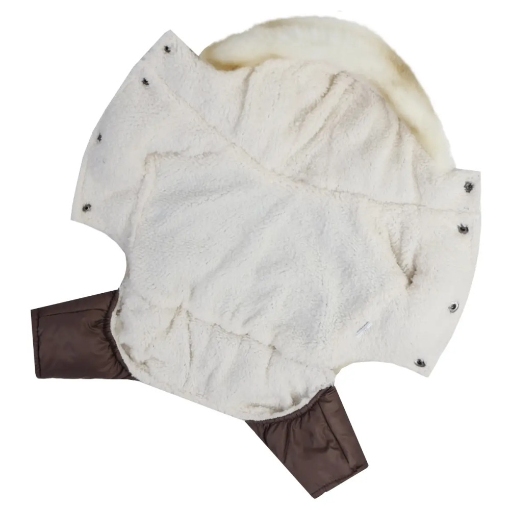 Зимний комбинезон для собак на меху жемчужного цвета AM-38 – универсальное решение для зимних прогулок. Тёплая меховая подкладка и стильный дизайн делают его не только практичным, но и эффектным элементом гардероба питомца.