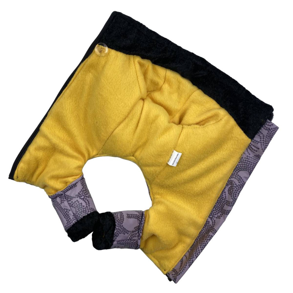 Для мелких пород собак в непогоду прохладной осенью и холодной зимой необходимо утеплять. Комбинезон из сиреневой плащевки с синтепоновой прокладкой и подкладкой из флиса от бренда DOGS BOMBA – решение проблемы и для короткошерстных небольших собак. Предлагаем купить многослойный зимний комбинезон на застежке типа «змейка» со светоотражающими элементами.