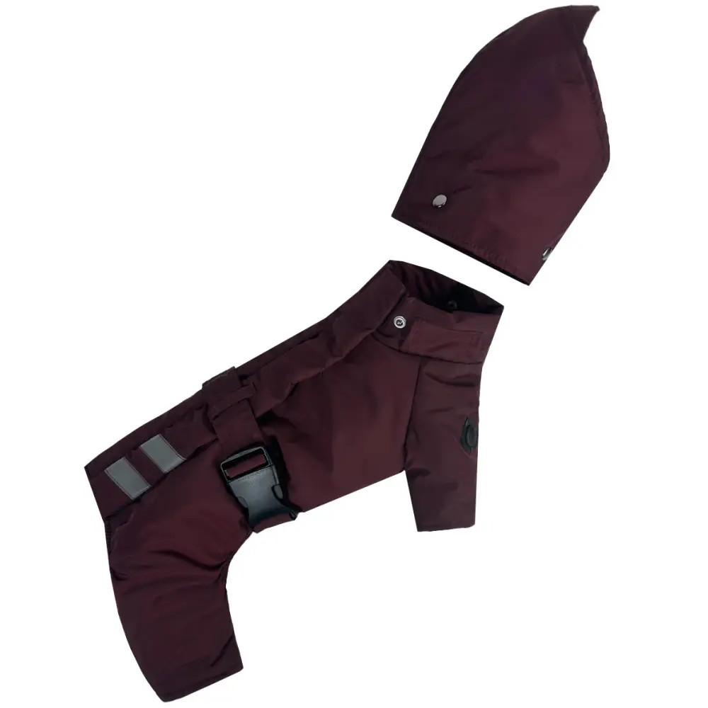 Зимний комбинезон для собак с поясом марсала R-61 – современное решение для зимних прогулок.