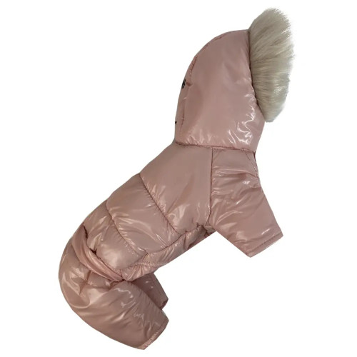 Зимний лакированный комбинезон для собак розового цвета A-80 – стиль и надёжная защита от зимней непогоды.