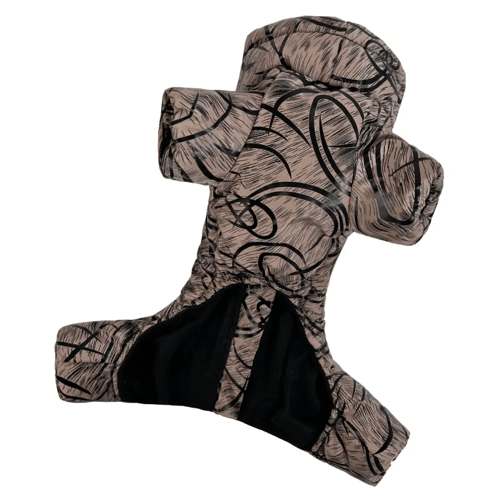 Зимний комбинезон для собак Dogs Bomba Comfort R-55 изготовлен из водоотталкивающей плащевки, утепленной синтепоном и мягкой флисовой подкладкой. Модель коричневого цвета с узорами обеспечивает надежную защиту от холода и влаги при температуре до -10°C. Изделие оснащено регулятором обхвата шеи для идеальной посадки и специальным отверстием для крепления поводка, что делает прогулки максимально комфортными. Эта теплая одежда станет отличным выбором для сухой морозной погоды, а для экстремальных холодов стоит рассмотреть более утепленная [зимняя одежда для собак](https://test.4dog.com.ua/ru/odezhda-dlya-sobak/zimnyaya-odezhda-dlya-sobak/).