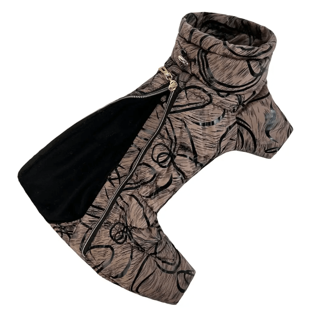Продуманная конструкция изделия с застежкой-молнией на спине позволяет быстро одеть питомца, не доставляя ему дискомфорта. Плотная ткань верха в сочетании с синтепоновым наполнителем создает эффективный барьер против ветра, а регулируемая горловина предотвращает попадание холодного воздуха внутрь.