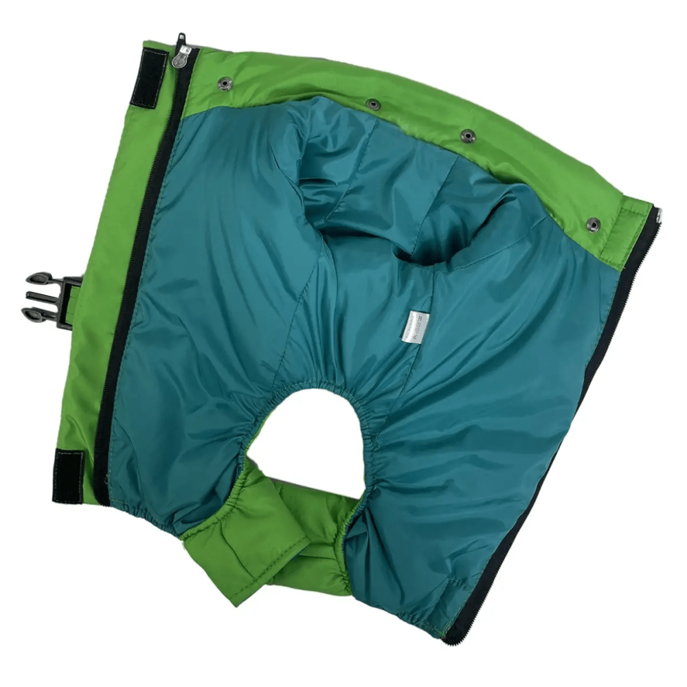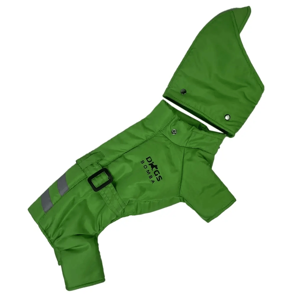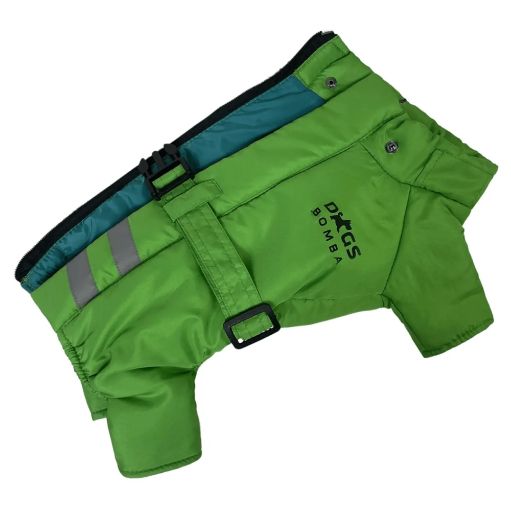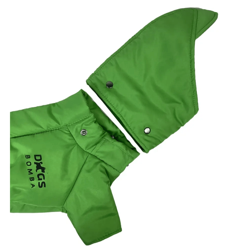 Зимний комбинезон для собак R-42 зелёного цвета – это идеальный выбор для холодных зимних прогулок. Выполненный из водоотталкивающей плащевки, он надёжно защищает от влаги, сохраняя комфорт и сухость в любую погоду. Синтепоновый наполнитель обеспечивает надёжное сохранение тепла, а водоотталкивающая подкладка добавляет дополнительную защиту.